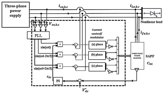 For the three-phase power system, the SAPF implementation is as in Figure 3.