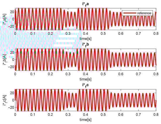 In Figure 4, the current references of the three-phase active power filter under indirect control are presented.