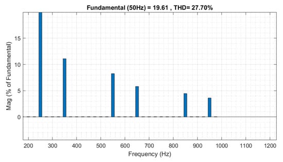 In [,,] a general presentation of the current control solutions for three-phase active power filters is made, from which the three classical methods mentioned above, are still intensively used due to the very good performances they offer. A more detailed comparison can be found in []. Different control structures from those already mentioned can be found in [,,,,,,,]. Each solution presents at least one advantage over the classical solutions (simpler hardware structure, use of a lower voltage on the filter’s DC voltage line, elimination of voltage or current transducers, operation without a PLL circuit, control law with a minimum of mathematical operations, etc.). In single-phase systems, reference can be obtained from the frequency analysis of the nonlinear load current, through adaptive, genetic algorithms [,] or through indirect methods.