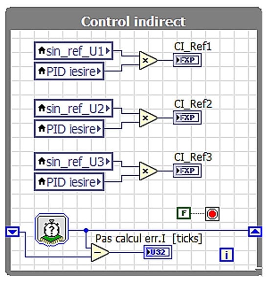 The indirect control method is presented in Figure 2. The implementation of the active power filter involves the dimensioning and realization of a control structure consisting of two regulation loops: one for the “on-line” calculation of the power supply current amplitude, and one for imposing the corresponding amplitude and shape of the grid current. The proposed structure is depicted in Figure 2.