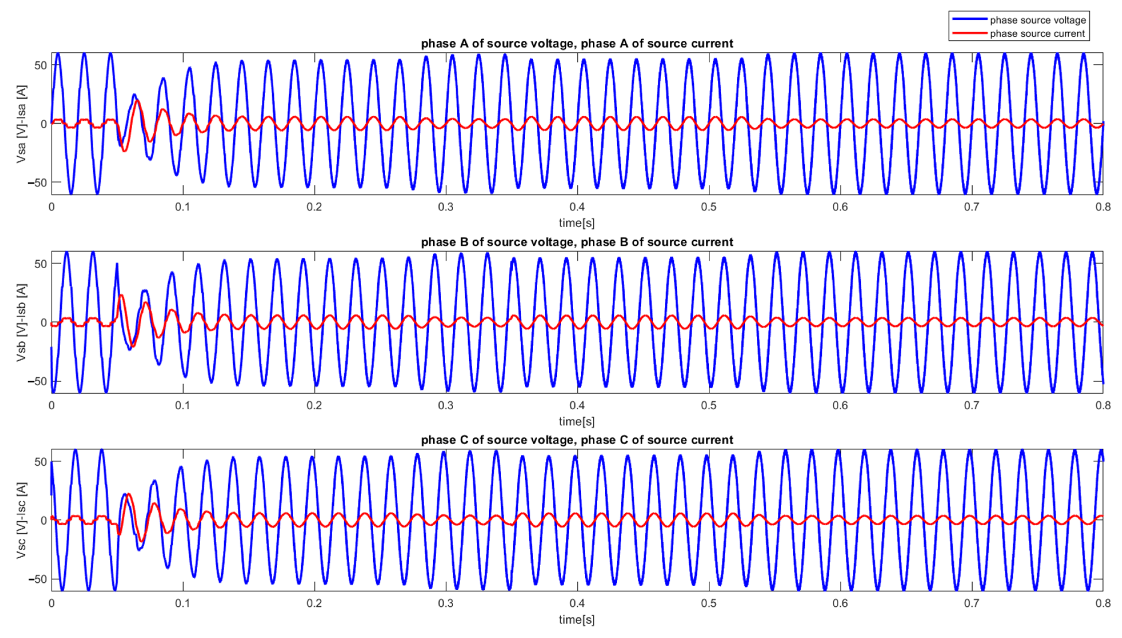 Assuming the sinusoidal power supply voltage, the significance of the fundamental Equation (5) is that the phase supply current is in phase with the power supply voltage and has the same sinusoidal form with the phase voltage, i.e., a unity power factor should be obtained.