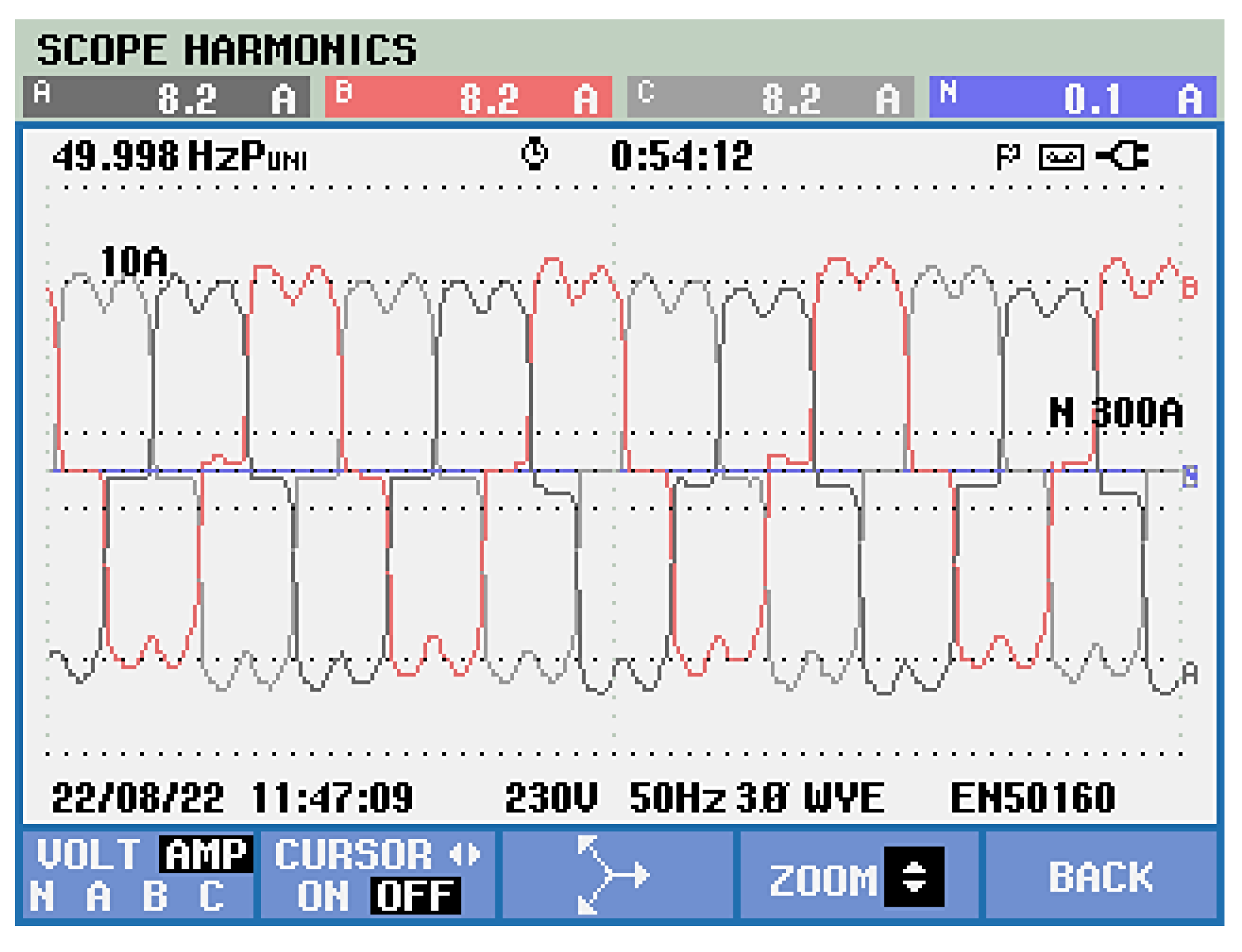 Imbalance of the three-phase electrical network due to unbalanced consumption in the 3 phases.
