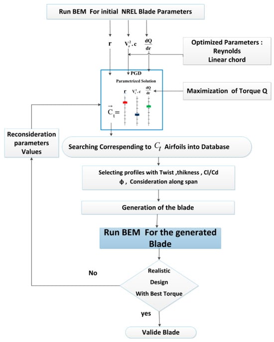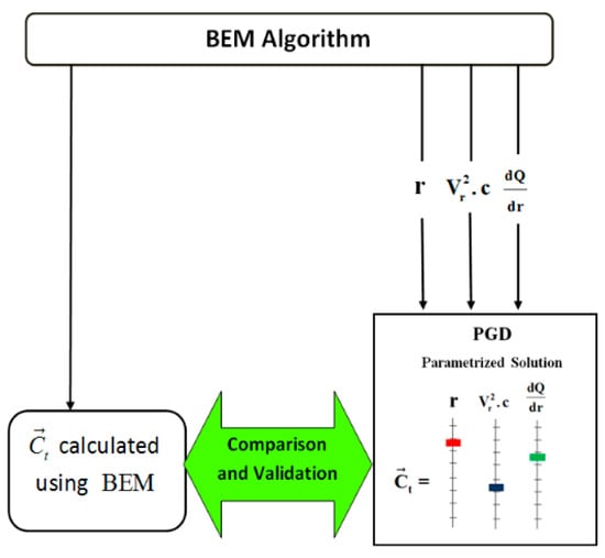 The PGD–BEM optimization workflow can be illustrated as follows Figure 4.