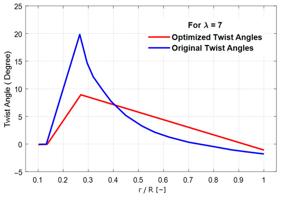 Taking into consideration the design parameters provided, the recommended range for the design value of the tip speed ratio is between 4 and 10, as stated in sources [29,30]. For the purpose of this study, the design tip-speed ratio has been opted for . The Table 2 provides an overview of the design specifications that were used to optimize the wind turbine blade:
