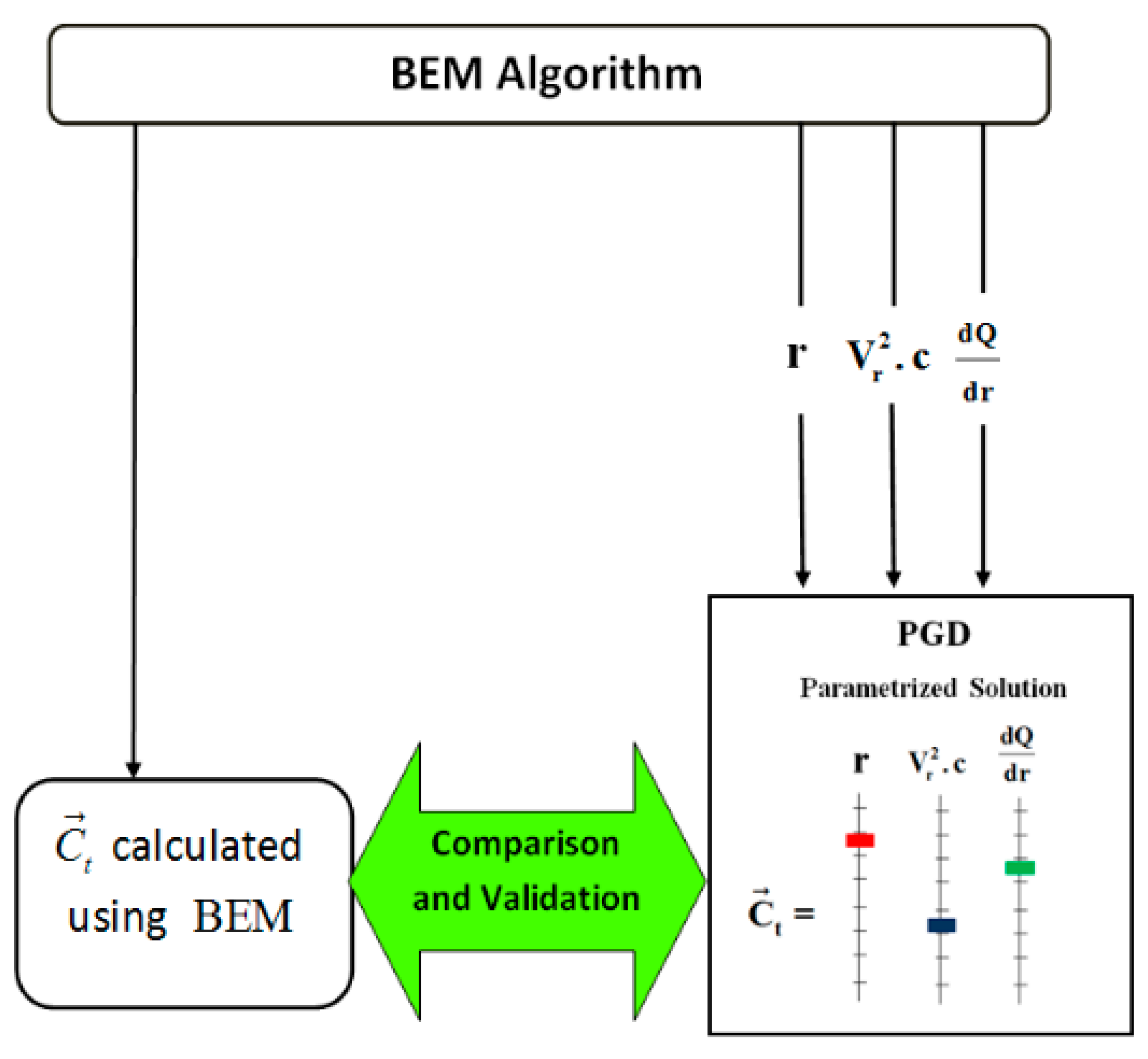 This iterative process continues until the desired power is obtained through the corresponding PGD parameters values of , and validated into the BEM algorithm for a realistic blade.
