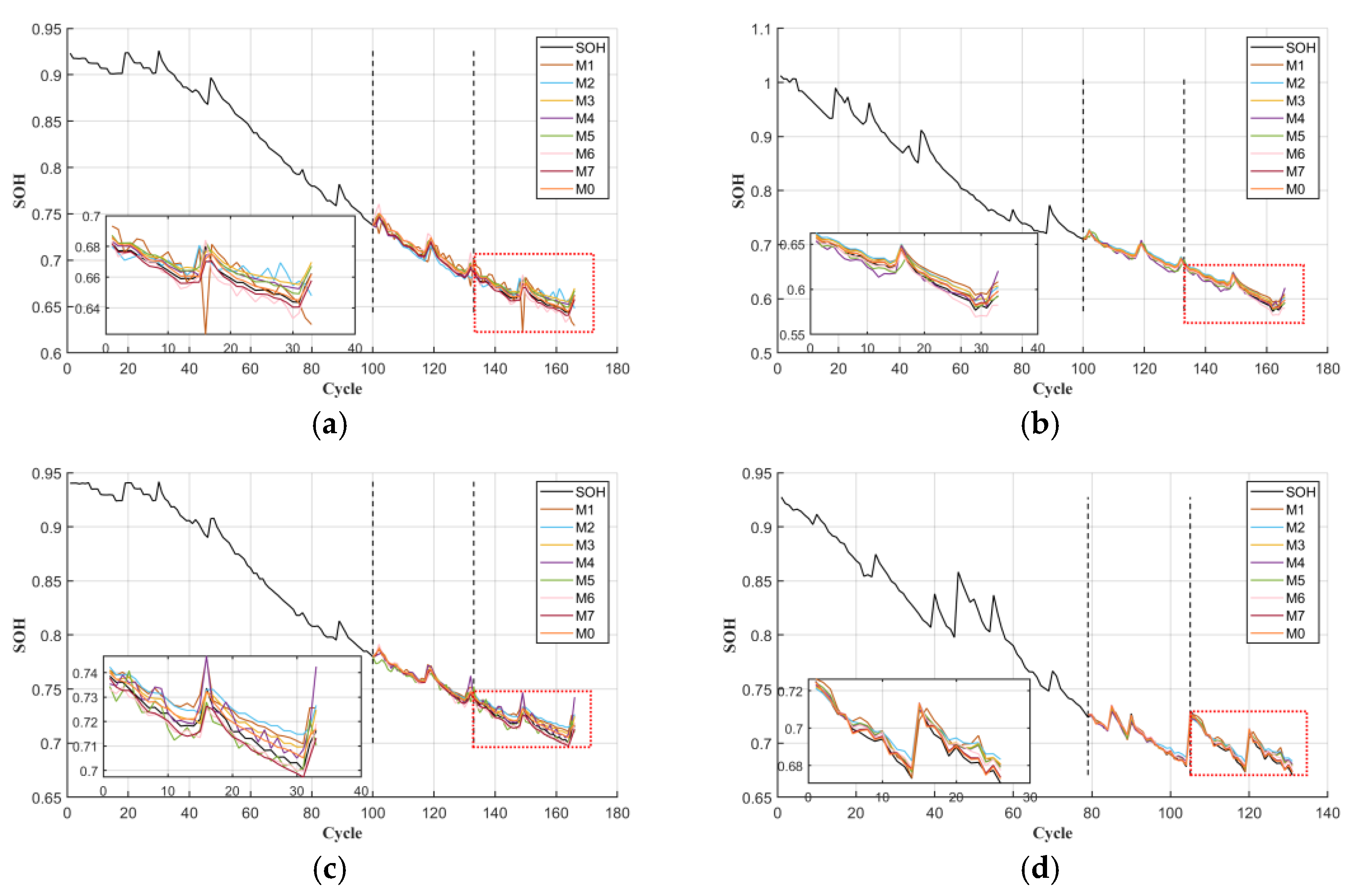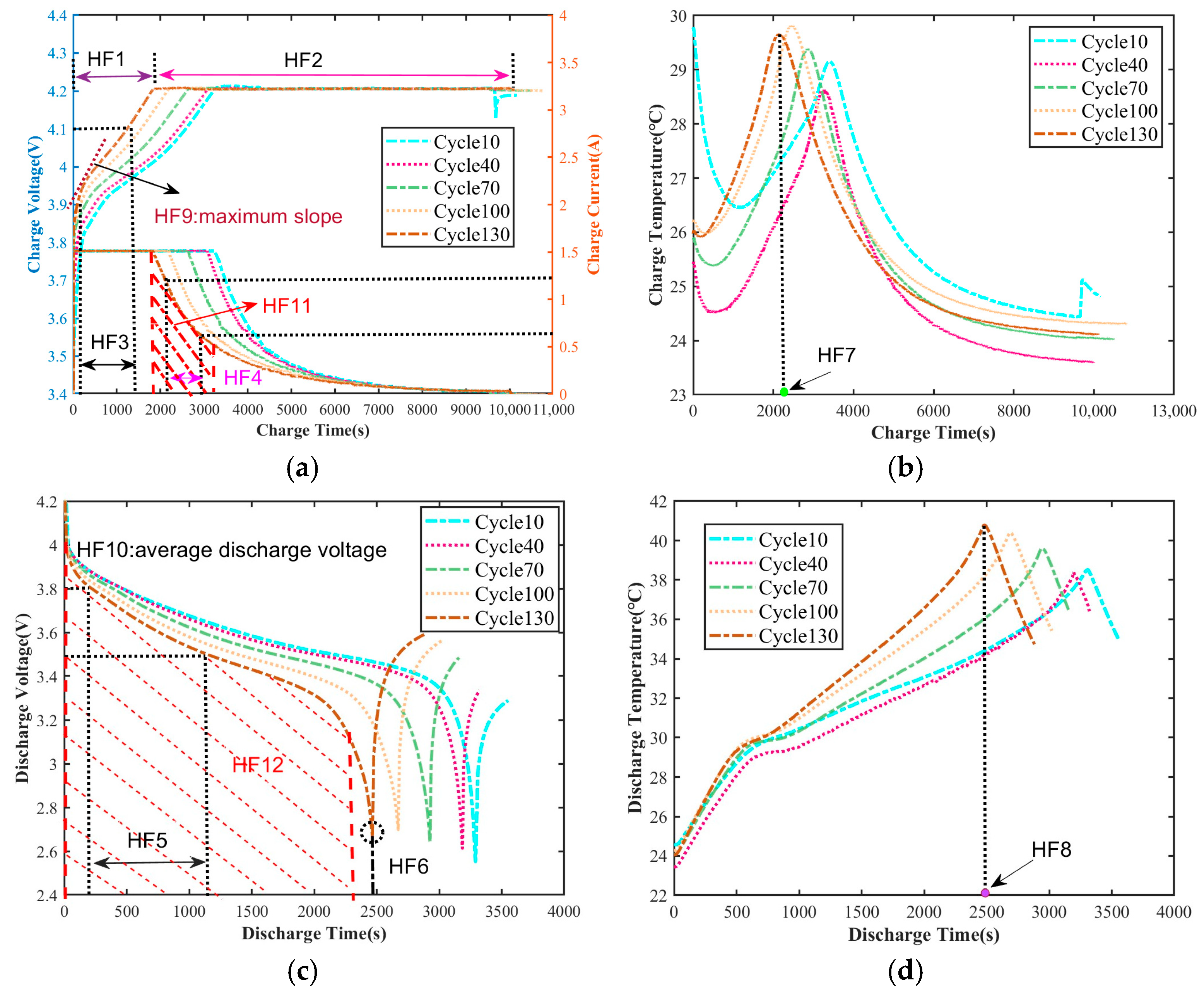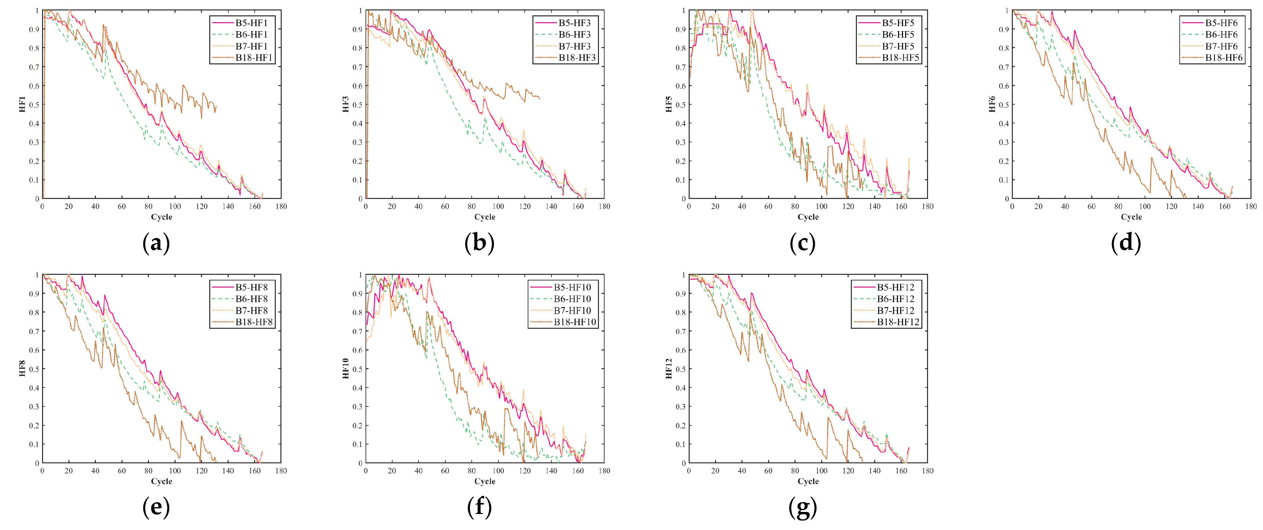 - Extraction of health factors: The battery health indicators in existing articles are usually directly given or refer to other studies. Due to the differences in batteries, the quantity and universality of these health indicators vary.