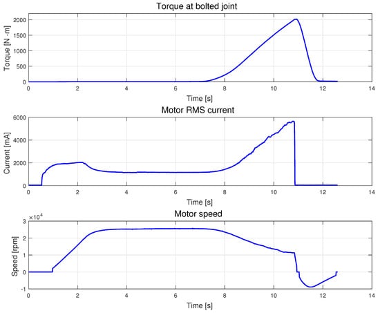 An example of such a complex system is an electric torque tool. The device is used for tightening threaded connections in many branches of industry. An example electric torque tool is shown in Figure 1. The device is composed of several subsystems: a mechanical assembly, an electric motor, a power stage, and an electronic controller, and is controlled by complex algorithms. A multi-domain simulation model of the tool is discussed in Section 2. A comprehensive model of such a device can enable simulation testing of its operation for use cases that are difficult to reproduce under laboratory conditions. This applies especially to sporadic abnormal scenarios and catastrophic failures such as thread stripping or bolt breakage.