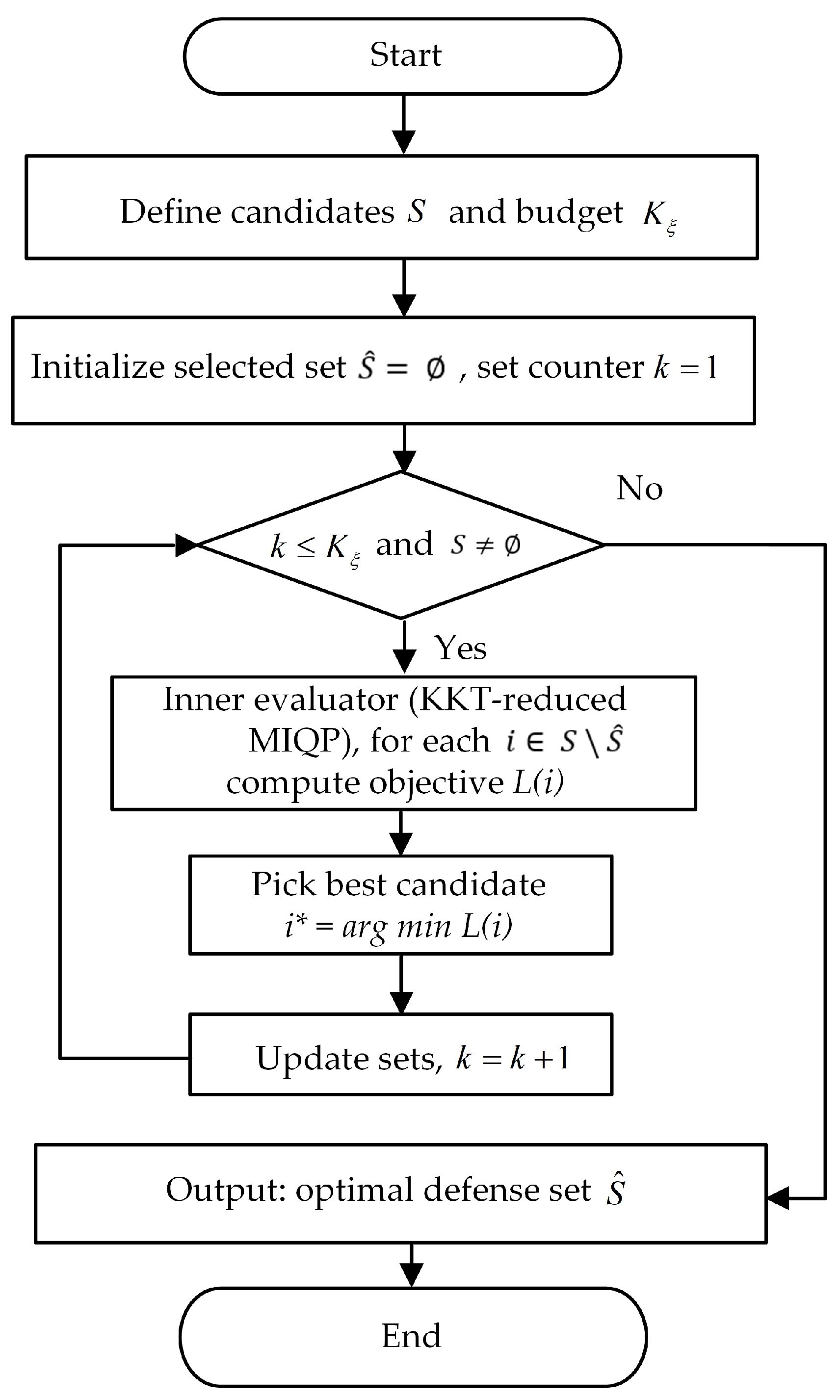 - Dong, Z.; Tian, M.; Tang, M.; Liang, J. Power Generation Allocation of Cyber–Physical Power Systems from a Defense–Attack–Defense Perspective. Int. J. Electr. Power Energy Syst. 2024, 156, 109690. [Google Scholar] [CrossRef]