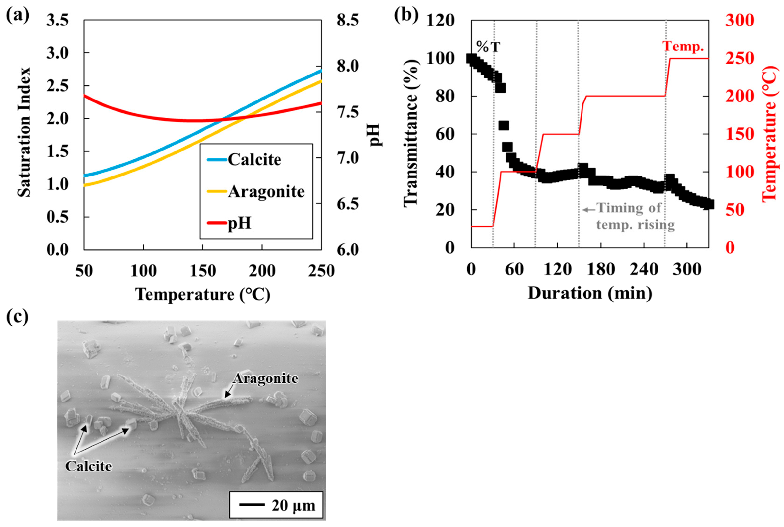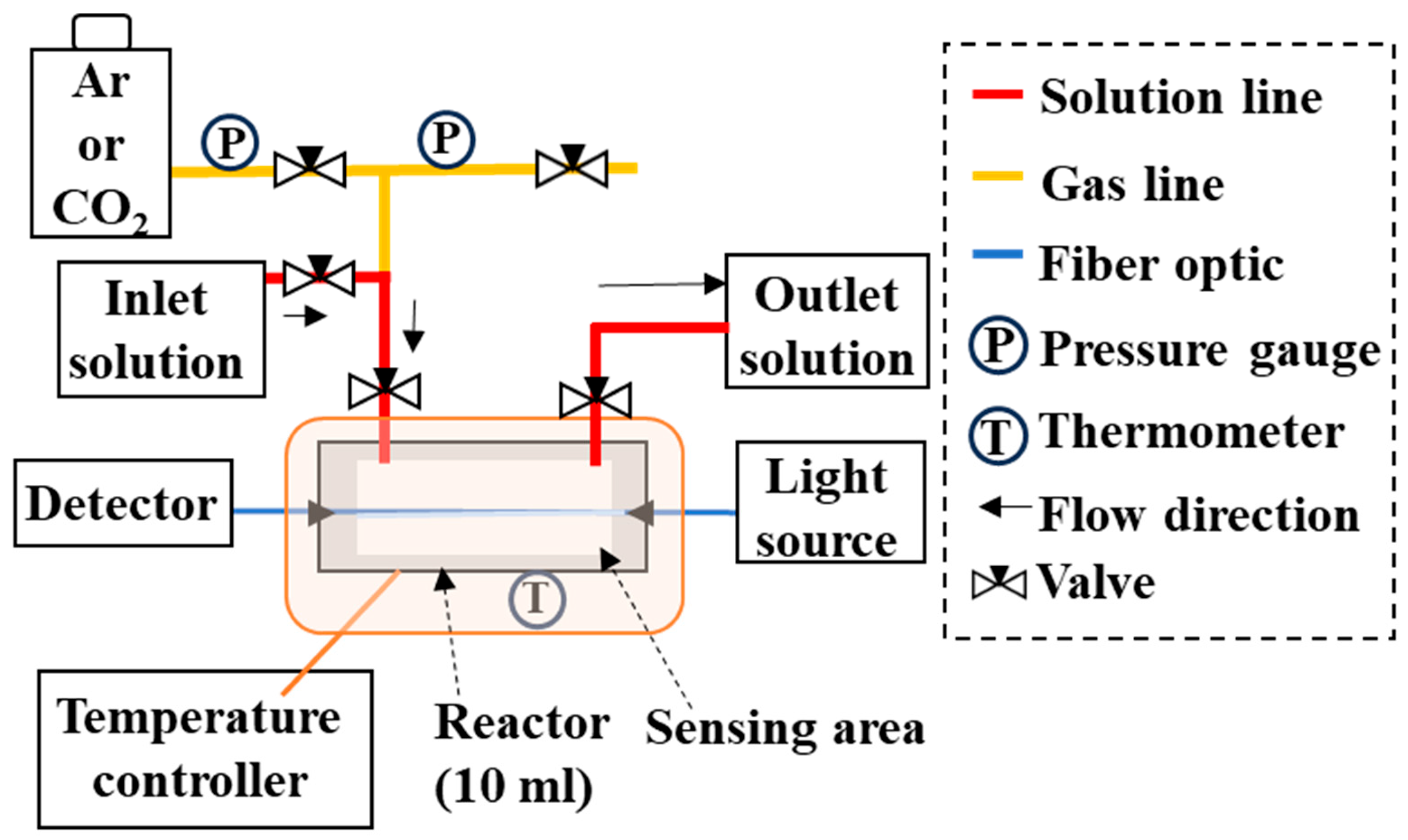- Satake, S.; Hosoki, A.; Okazaki, T.; Ueda, A.; Kuramitz, H.; Terai, A. Real-Time Monitoring of CaCO3 Precipitation Using Fiber Optics Scale Sensor Under High Temperature and Pressure Conditions. In Proceedings of the 2024 IEEE SENSORS, Kobe, Japan, 20–23 October 2024. [Google Scholar]