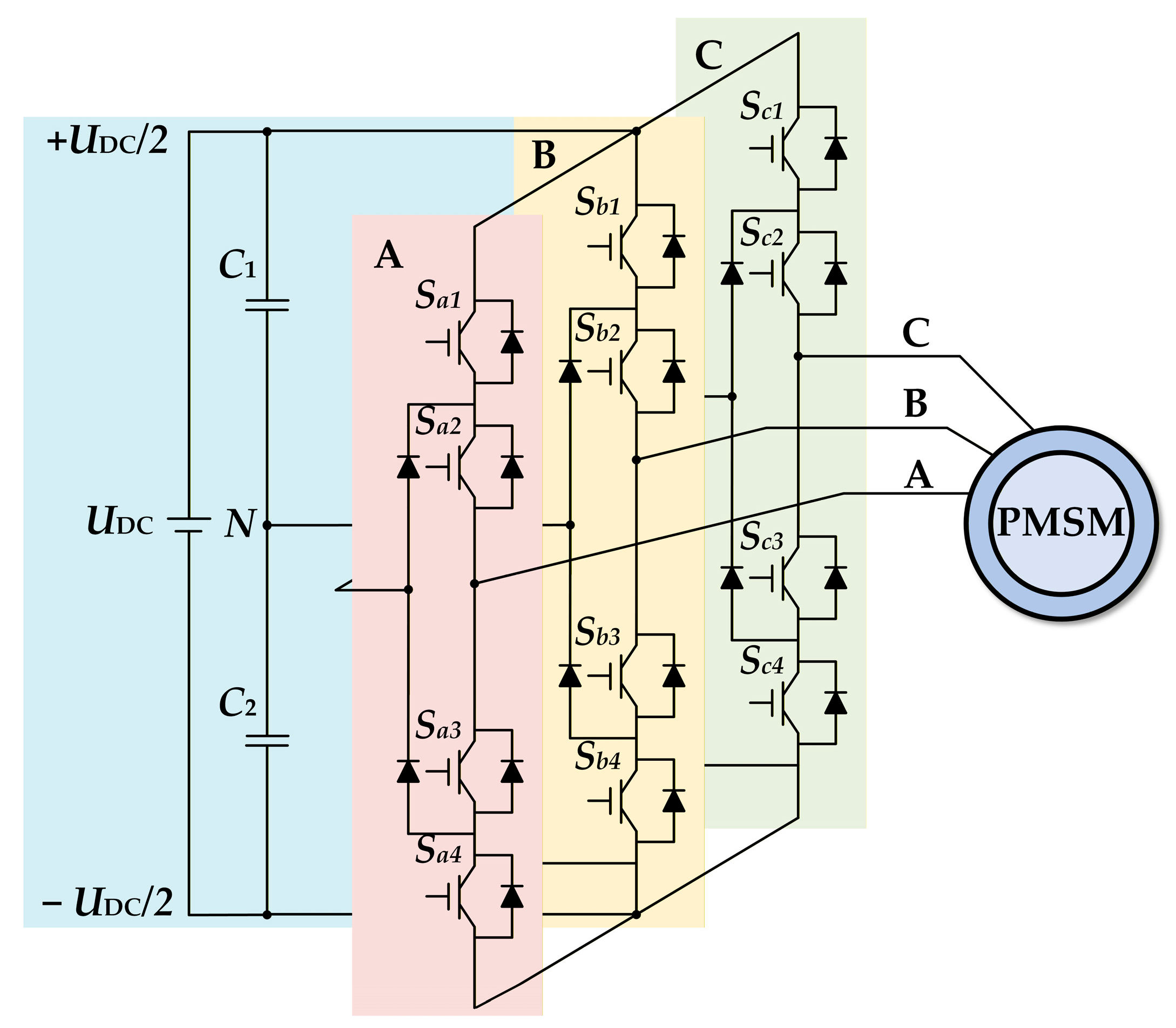 - Wang, G.; Li, P.; Wang, Y. Non-Weighted Two-Stage Model Predictive Control Strategy Based on Three-Level NPC Inverter. Energies 2024, 17, 1813. [Google Scholar] [CrossRef]