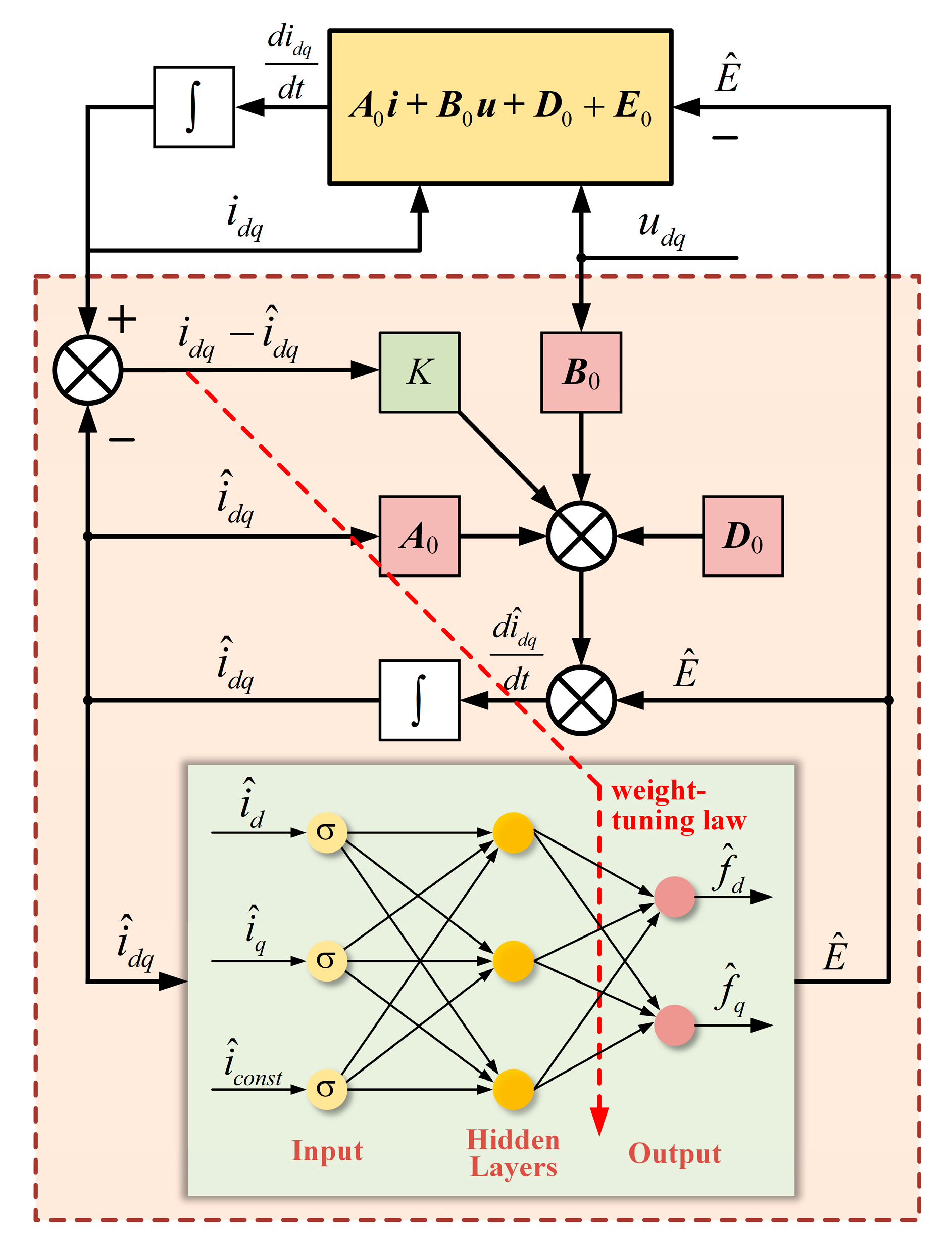 - Neural-Network Disturbance Observer—An online weight-tuning law derived via Lyapunov stability theory enables the NN-based disturbance observer to estimate and compensate parametric mismatches in real time. Experimental results demonstrate that this adaptive approach achieves substantially improved current tracking accuracy while requiring no offline gain tuning.