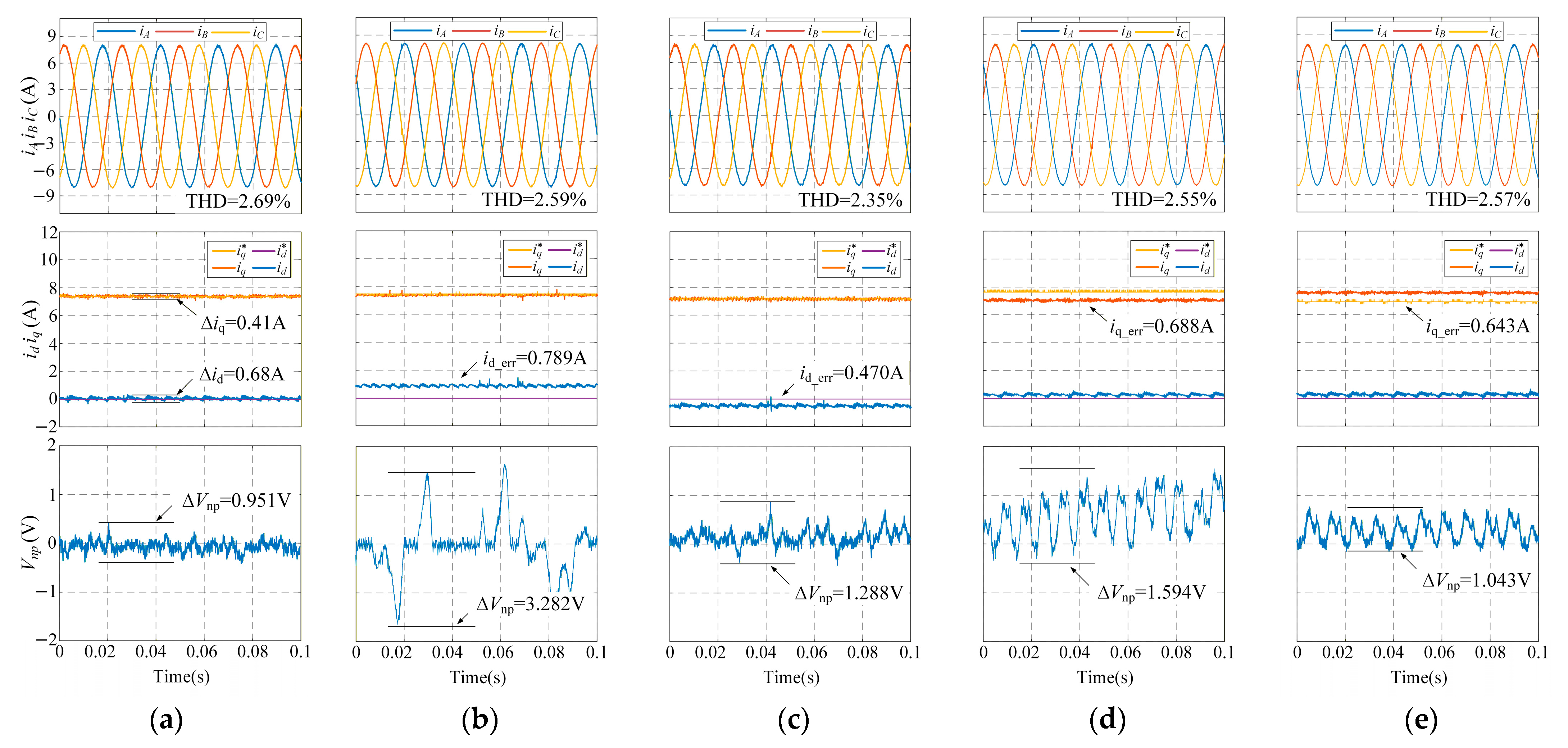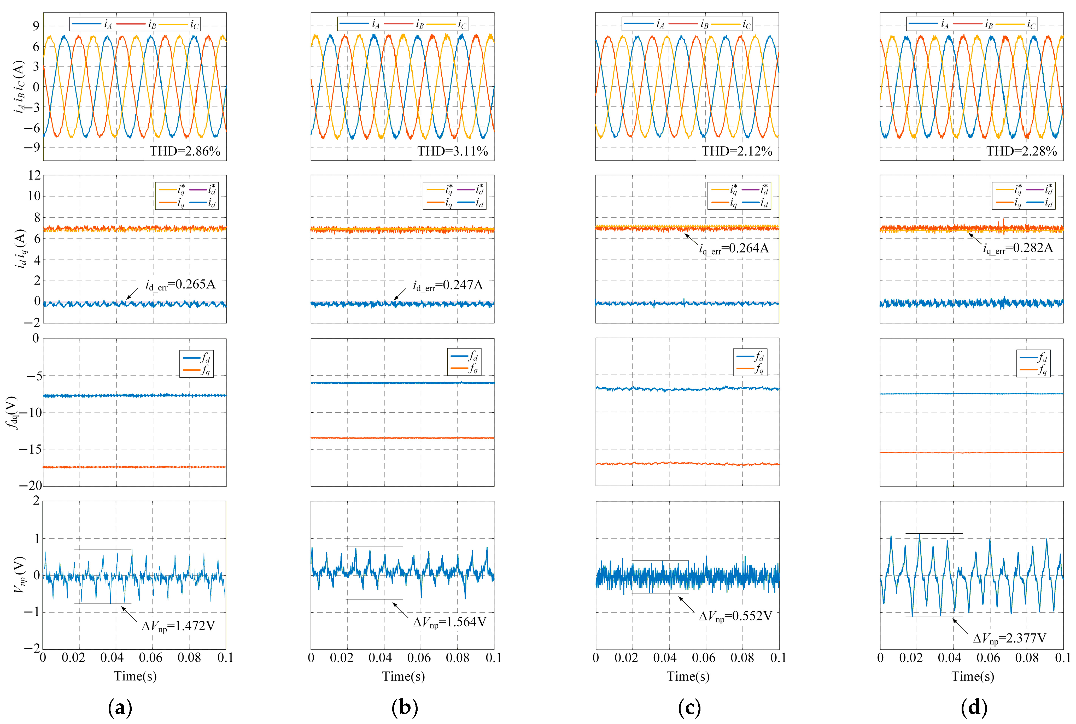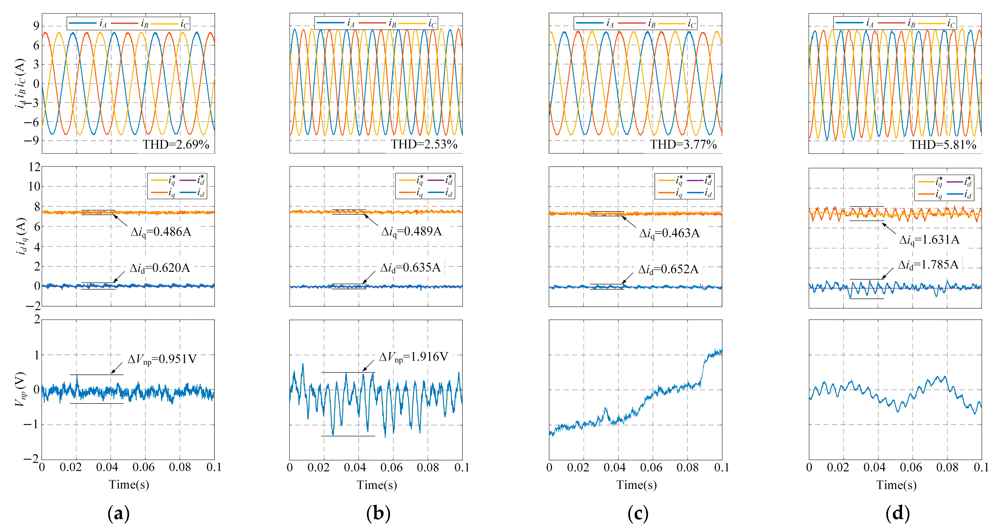 5.1. Performance of Cascaded Structure with CCS-MPC and Mid-Point Voltage Control