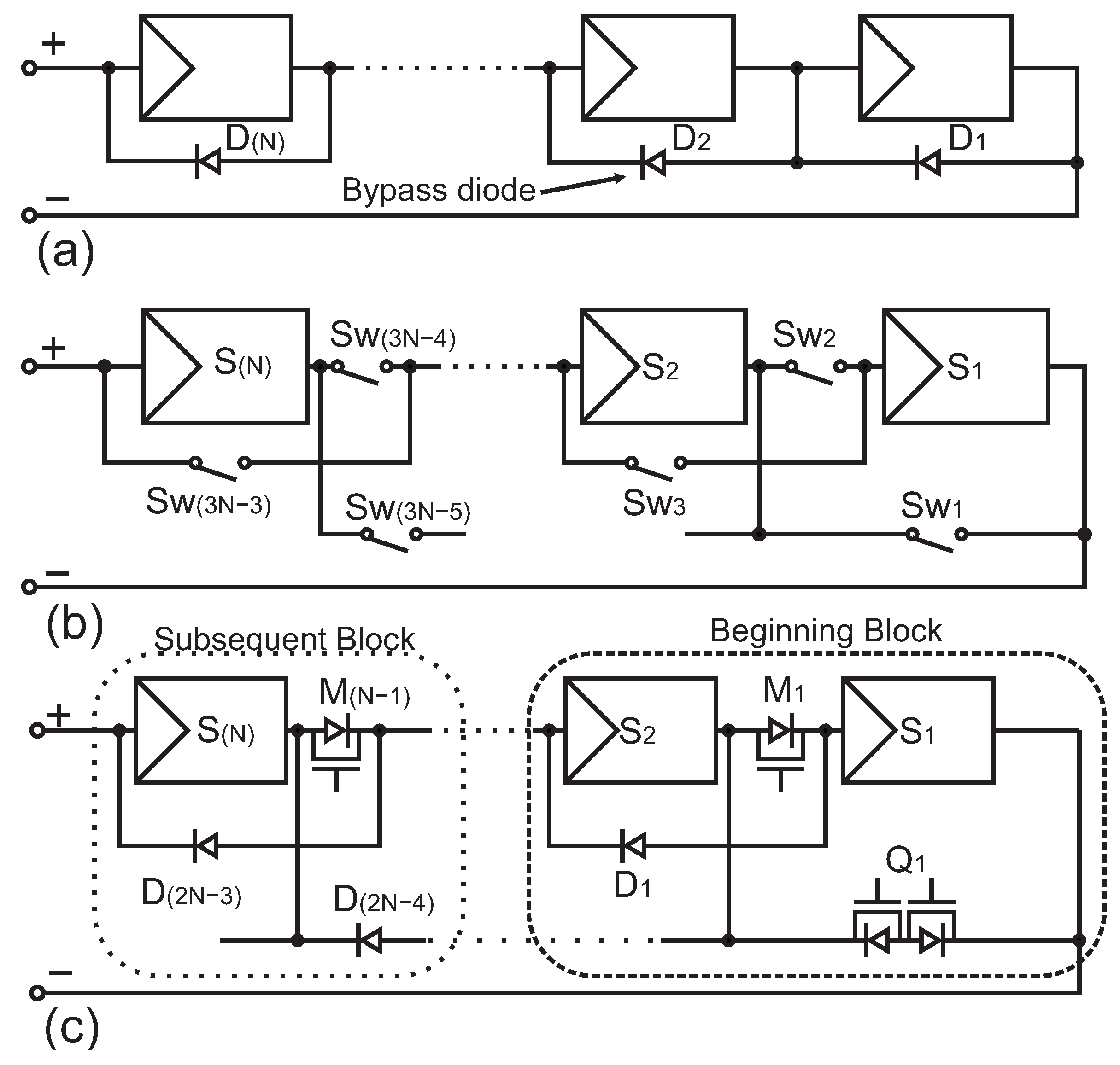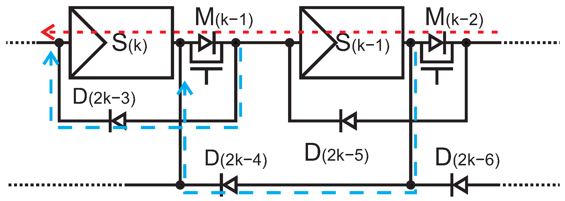 - Tanemo, M.; Matsudate, K.; Nomura, S. Change in Circuit Configuration of Photovoltaic Modules Using Series/Parallel Switching Circuits Composed of Power MOSFETs. IEEE J. Ind. Appl. 2020, 9, 73–81. [Google Scholar] [CrossRef]