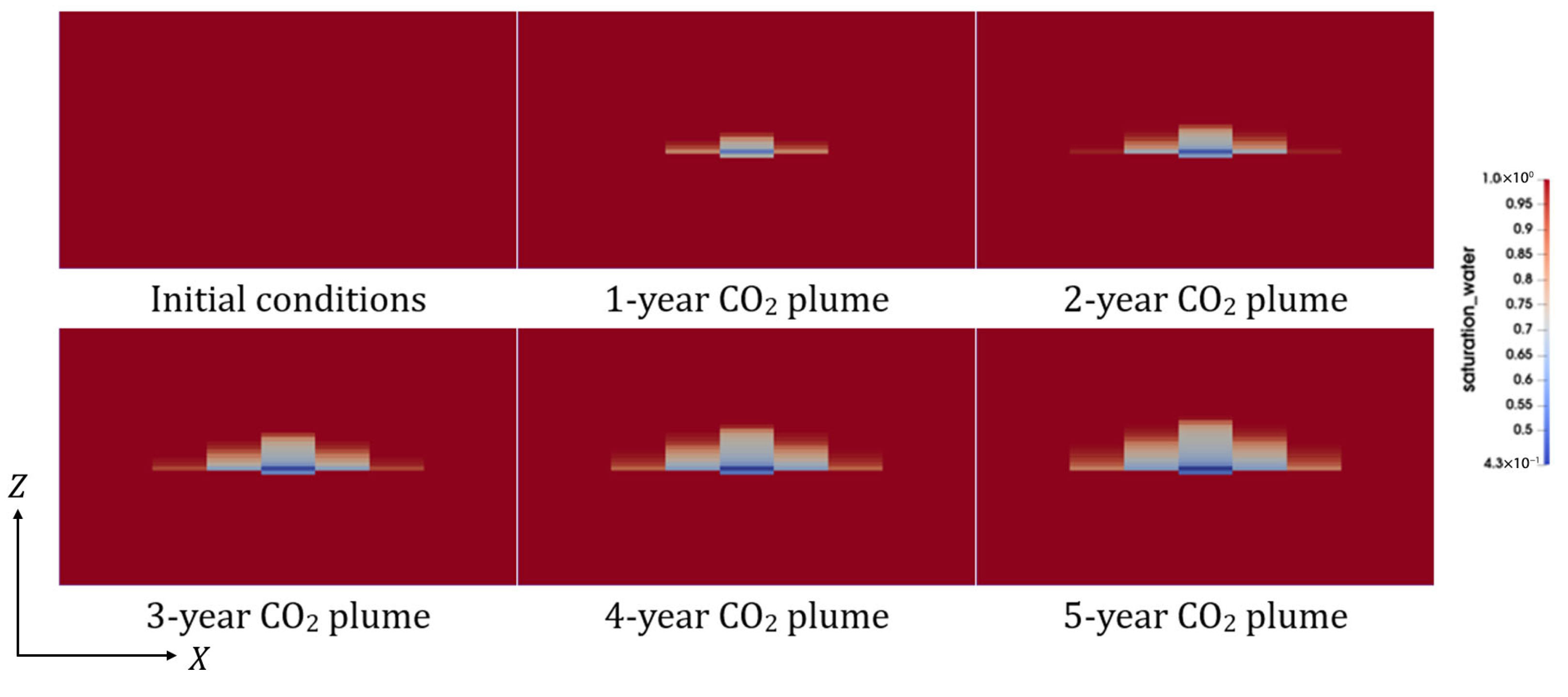 - GEOS Verification of CO2 Core Flood Experiment with Buckley-Leverett Solution. Available online: https://geosx-geosx.readthedocs-hosted.com/en/latest/docs/sphinx/advancedExamples/validationStudies/carbonStorage/buckleyLeverett/Example.html#id1 (accessed on 1 January 2025).