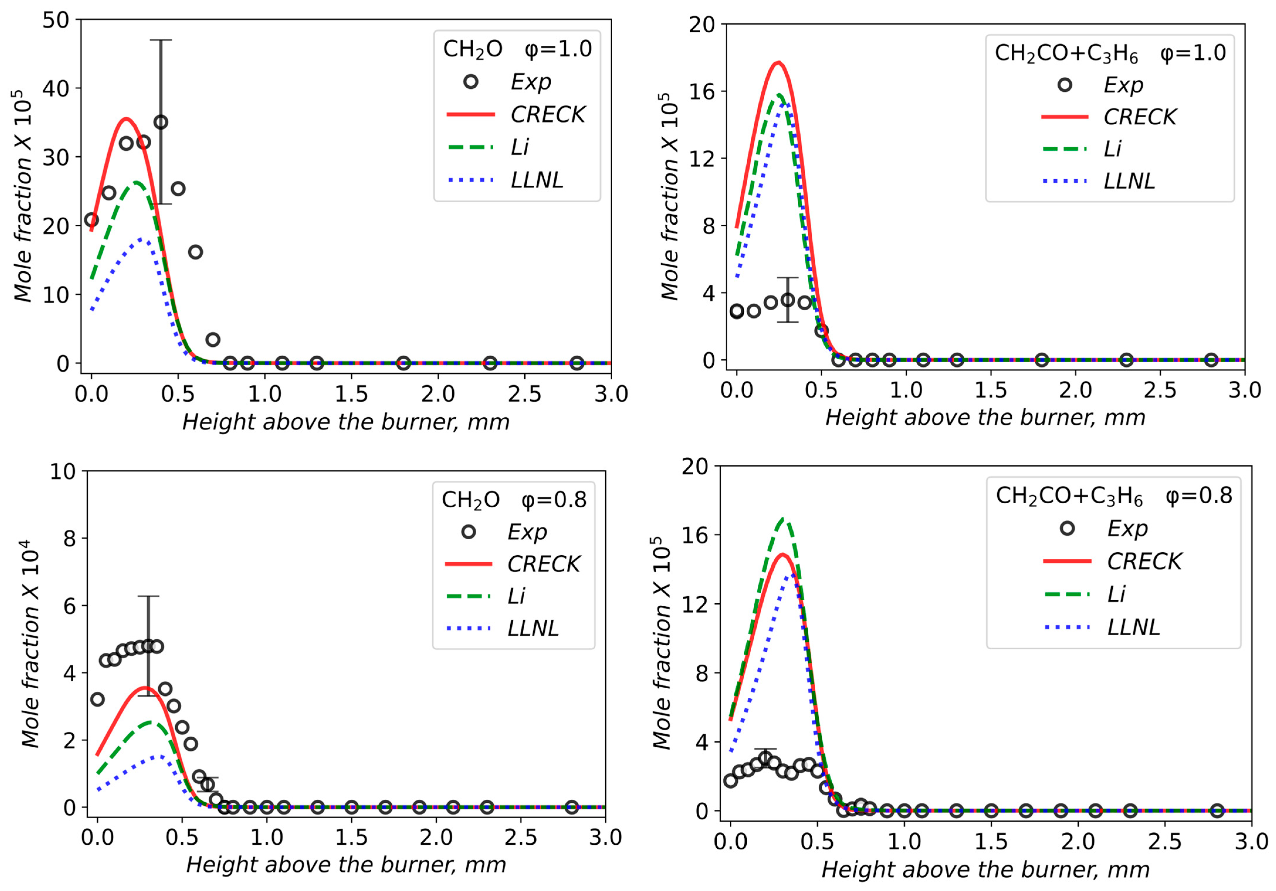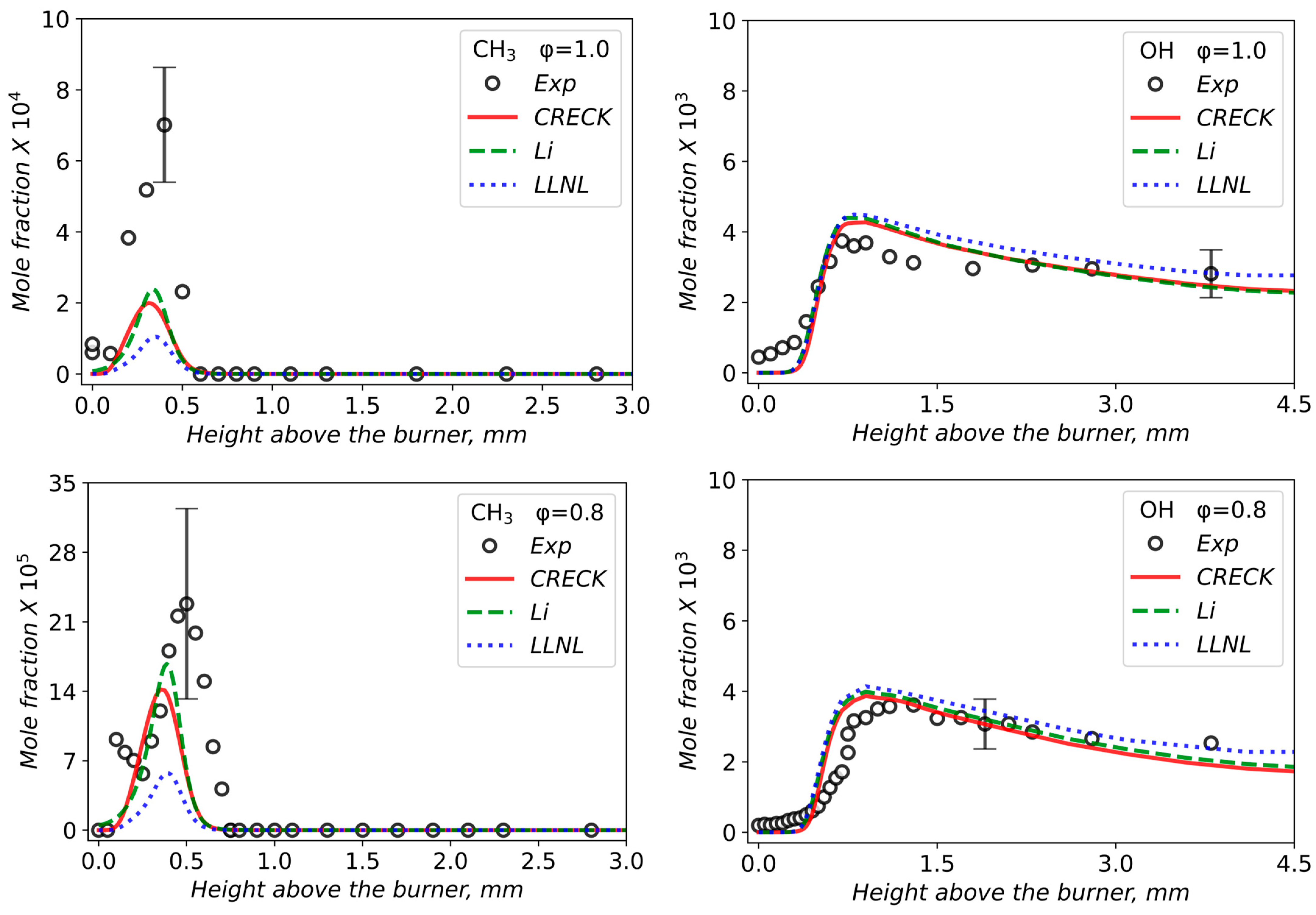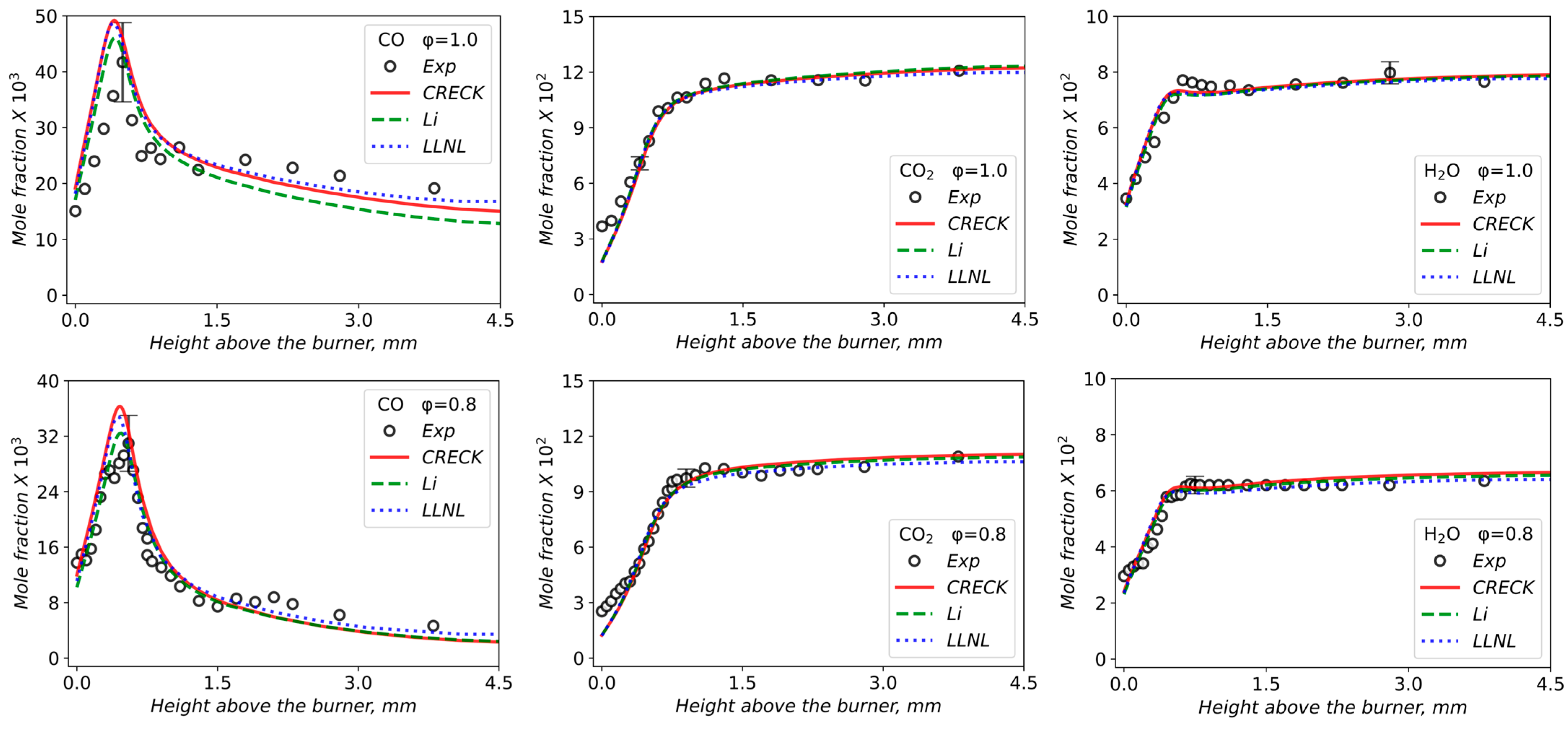3.2. Validation of Models Against Experimental Data: Chemical Flame Structure