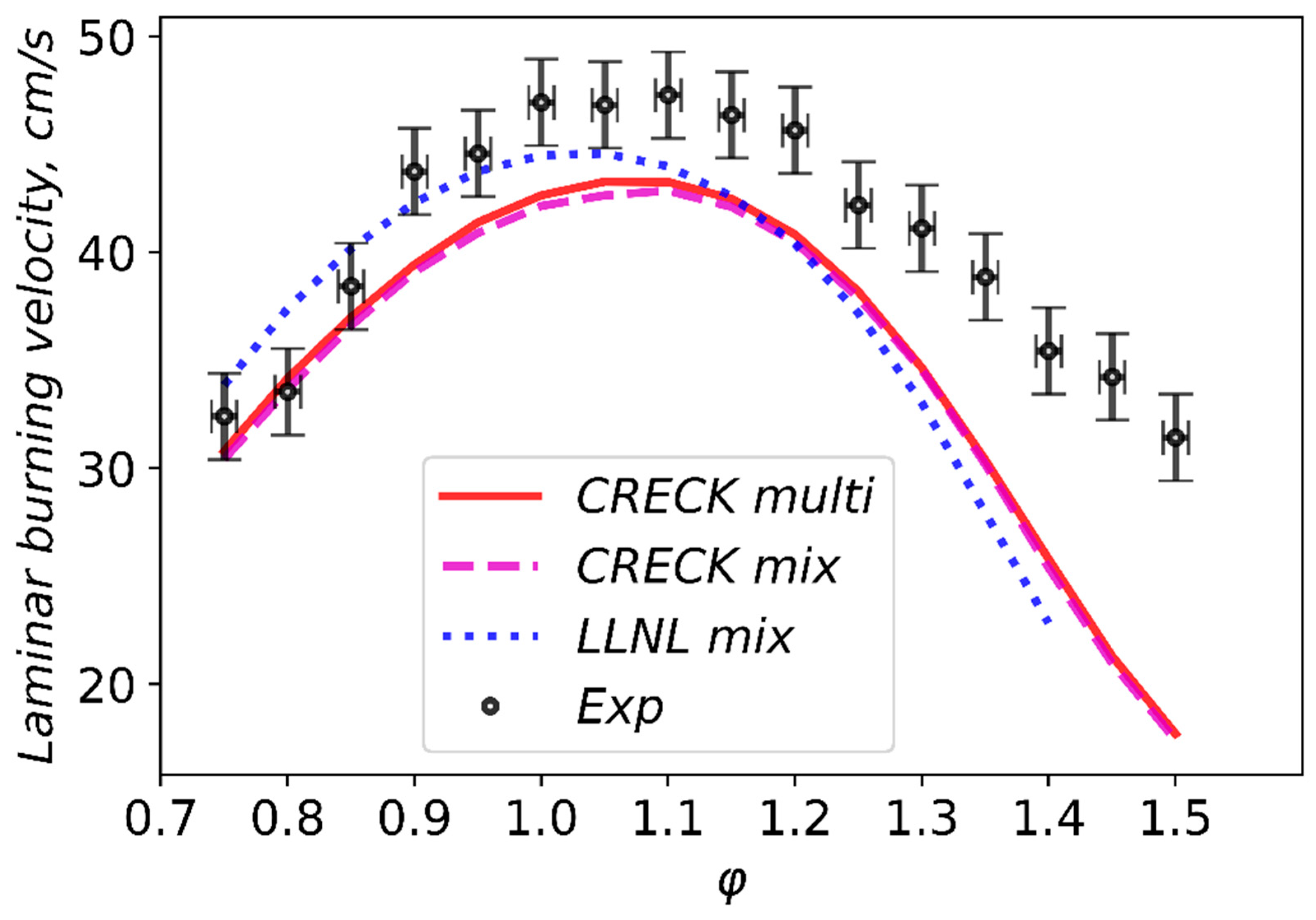 3.3. Validation of Models Against Experimental Data: Laminar Burning Velocity