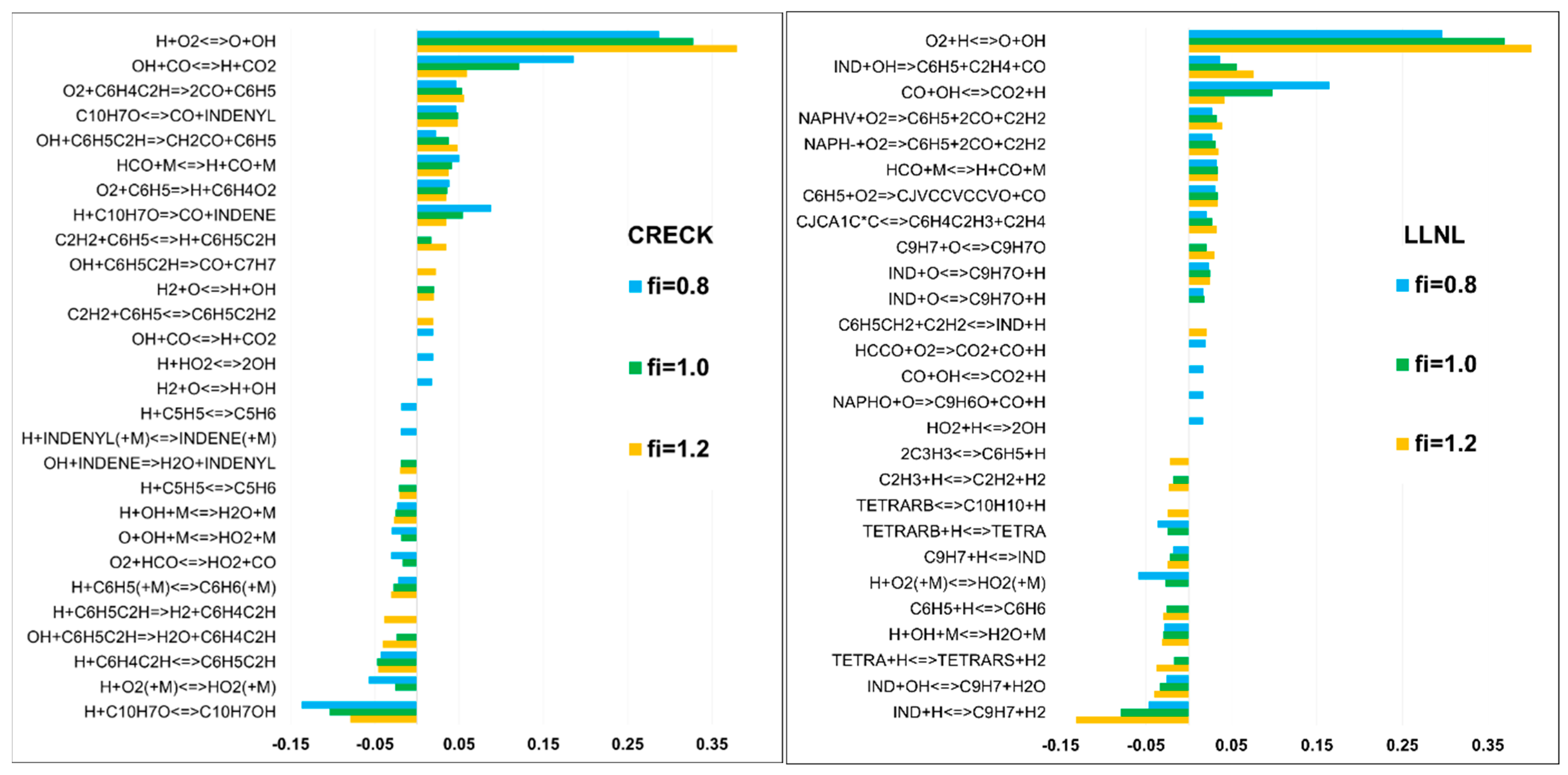 - The C10H7O, C6H5C2H, and C6H5 radicals were identified as the principal fuel-derived intermediates controlling the laminar burning velocity. Taking into account low predictive capability of the models against these intermediates, revising the rate constants and uncertain branching ratios for corresponding H-abstraction and β-scission channels is expected to substantially improve model predictions.