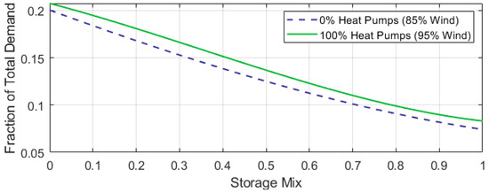 Energy storage is considered key to increasing the penetration of renewables [18,19,20,21]. Even if space heating is not electrified, the UK will need a significant energy storage capacity to decarbonize its electricity grid [22,23]. However, the electrification of space heating will increase demand peaks and create steeper ramps, making energy storage much more important.