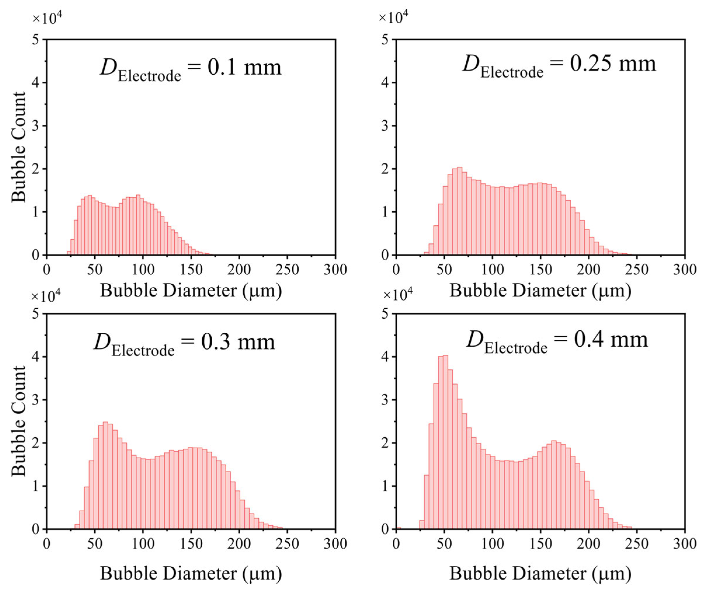 - Liu, Y.; Li, S.; Wu, H.; Shi, Y. Experimental Investigation and Analysis for the Bubble Size Distribution During Alkaline Water Electrolysis by Using a Wire Electrode. DeCarbon 2024, 5, 100052. [Google Scholar] [CrossRef]