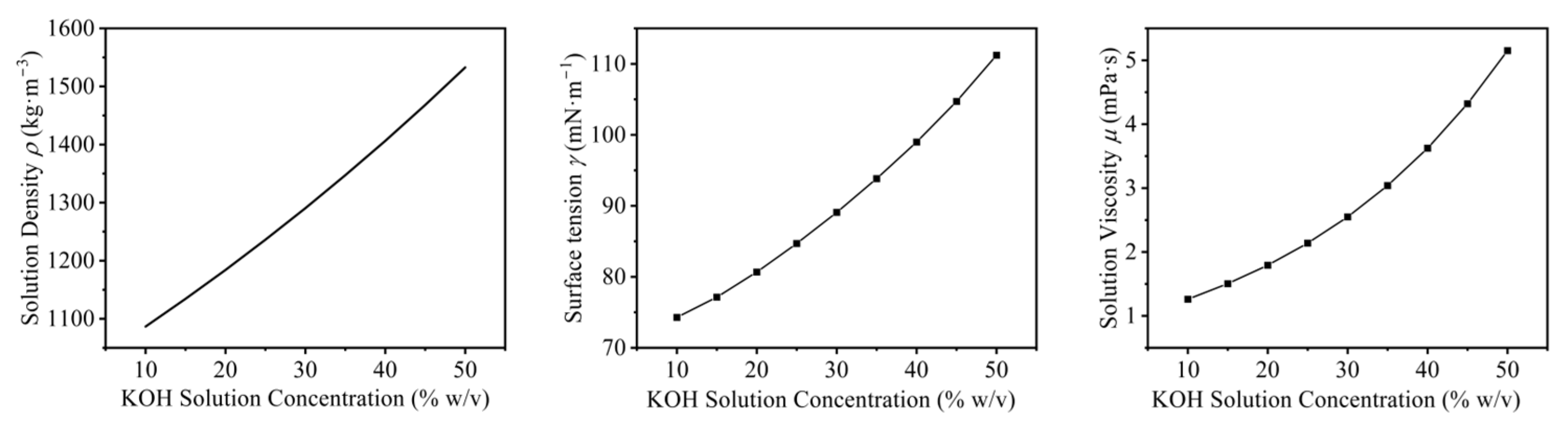 - Hodges, A.; Renz, S.; Lohmann-Richters, F.; Al-Musawi, A.; Jupke, A.; Lehnert, W.; Swiegers, G.F.; Wallace, G.G. Critical Analysis of Published Physical Property Data for Aqueous Potassium Hydroxide. Collation into Detailed Models for Alkaline Electrolysis. J. Chem. Eng. Data 2023, 68, 1485–1506. [Google Scholar] [CrossRef]