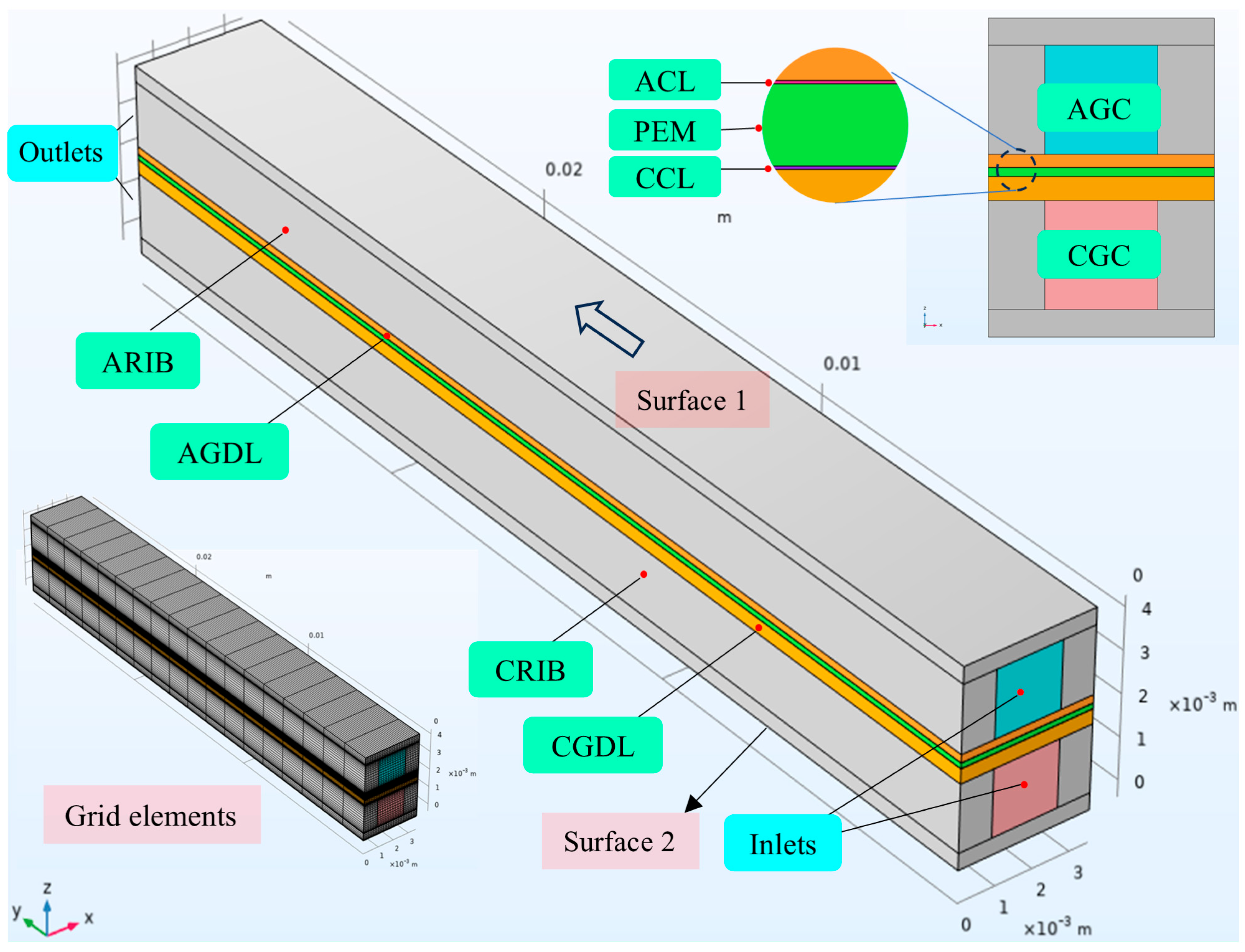 - Xu, Y.; Zhang, G.; Wu, L.; Bao, Z.; Zu, B.; Jiao, K. A 3-D multiphase model of proton exchange membrane electrolyzer based on open-source CFD. Digit. Chem. Eng. 2021, 1, 100004. [Google Scholar] [CrossRef]