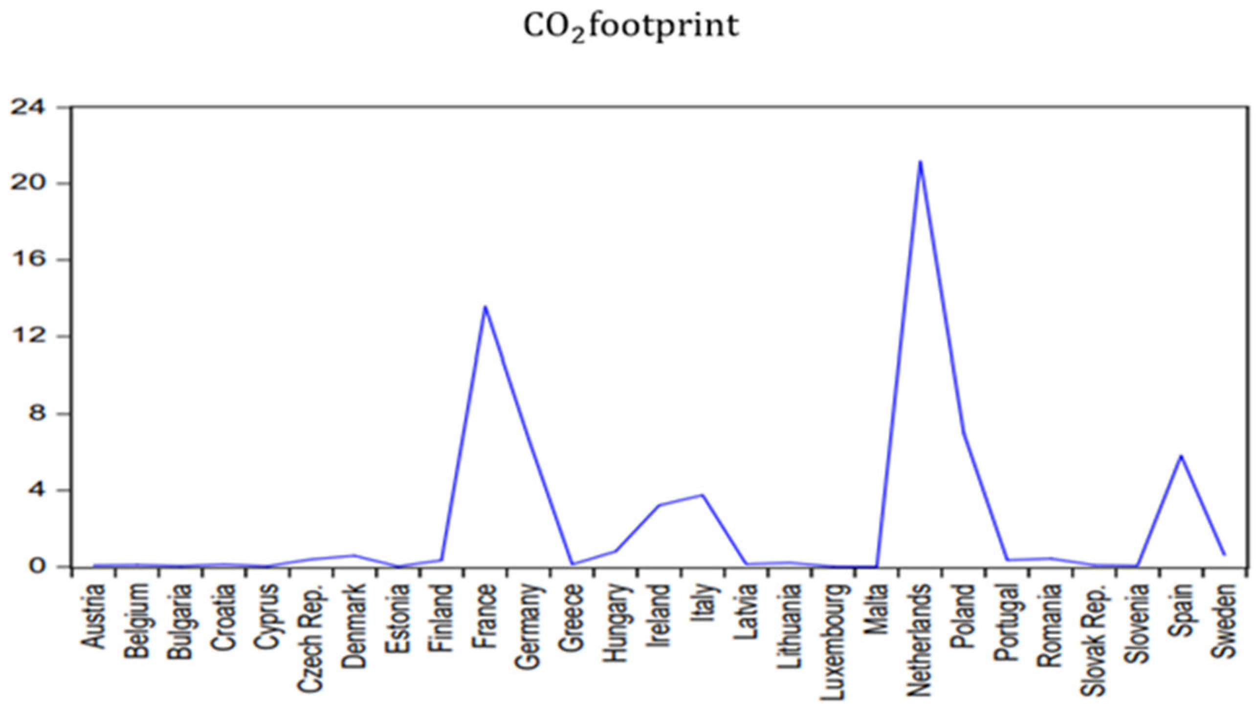 2 footprints. This suggests significant differences in energy mix, industrial intensity, and consumption patterns among member states, factors that the Fixed Effects model helps to control for in our econometric analysis.