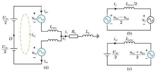 According to Kirchhoff’s Voltage Law, the relationship between the upper and lower arms of phase j can be derived from Figure 5a, as follows: