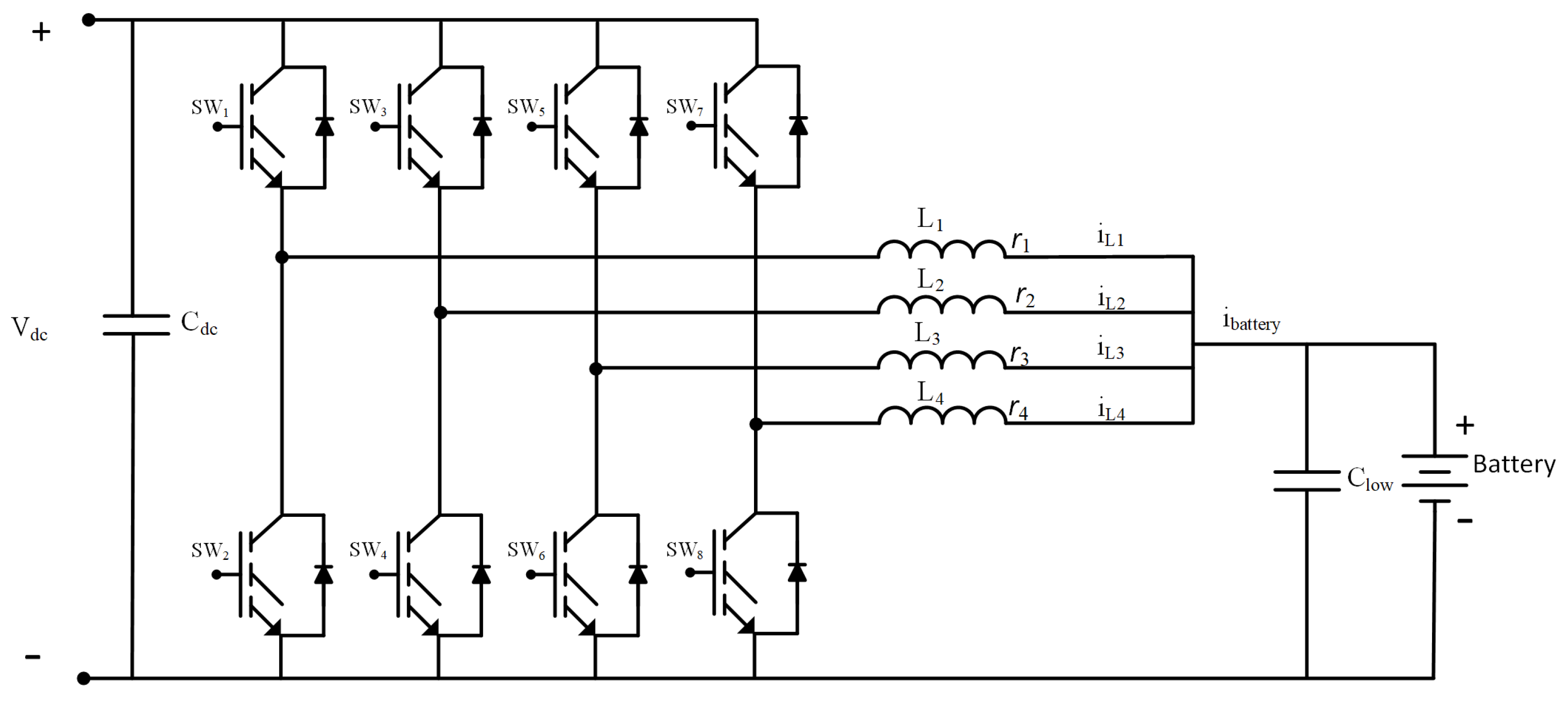 2.3. Modeling of the Interleaved Bidirectional DC–DC Converter