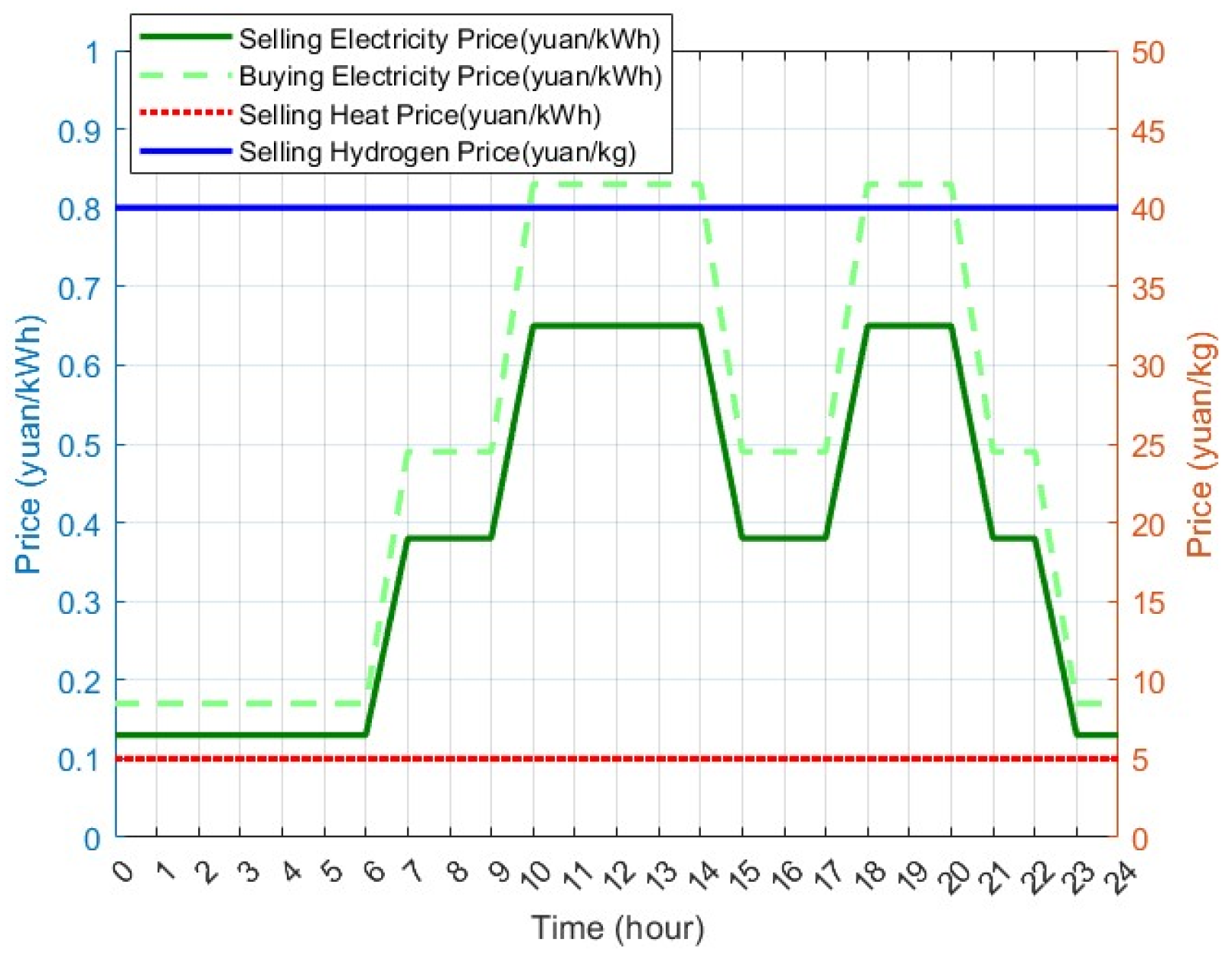 represent the fuel cost, grid exchange cost, maintenance cost, environmental cost, and planning and operational costs of hydrogen energy systems at time period t, respectively. Among them, the environmental cost refers to the cost of other local pollutants internally, that do not include the cost of CO
