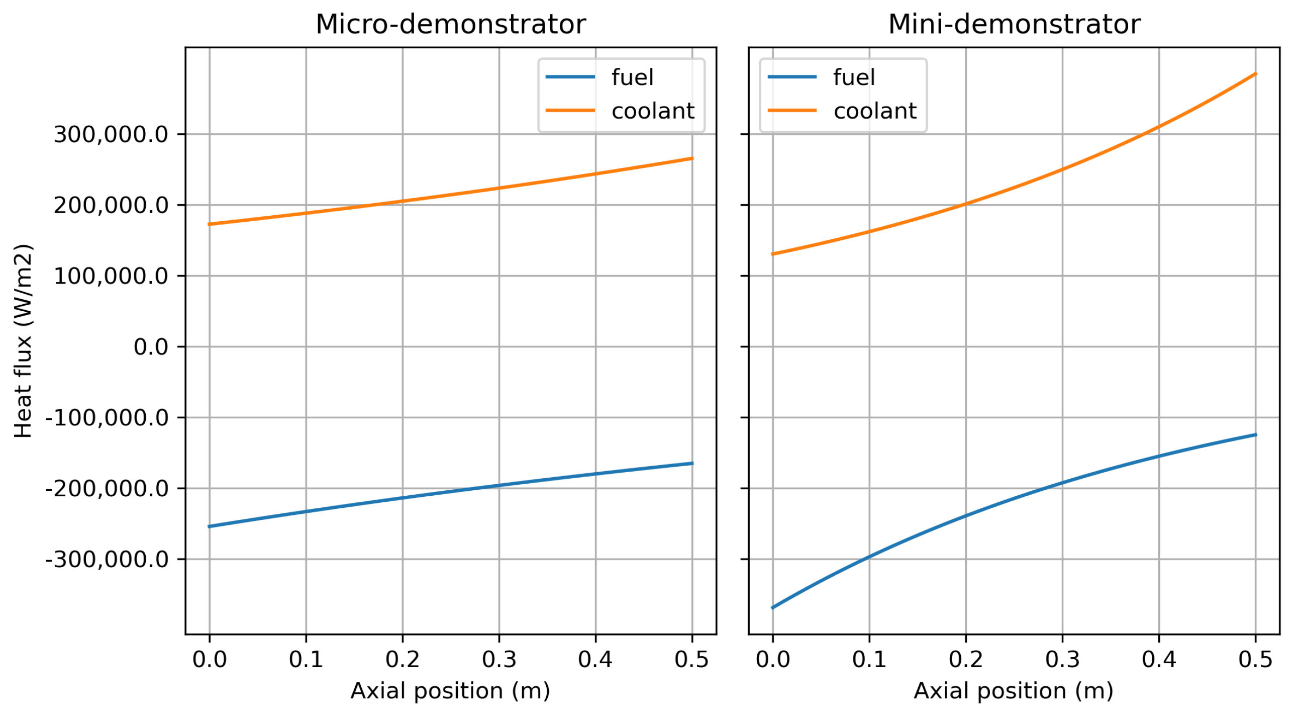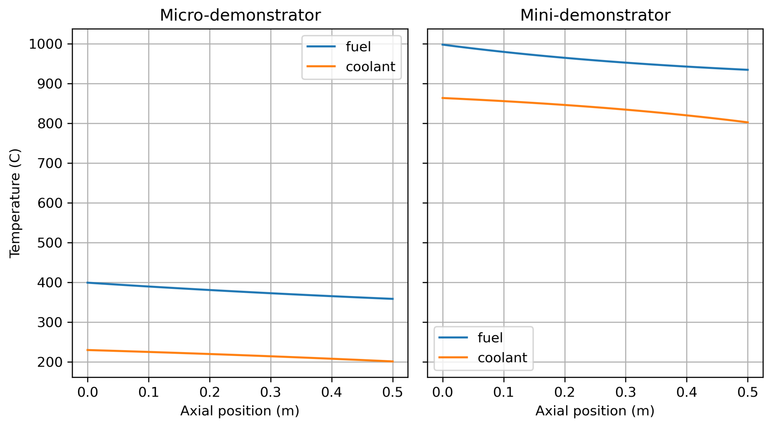 While the Cathare-2 models for the micro- and minidemonstrator share an identical core geometry to provide a consistent basis for comparison (