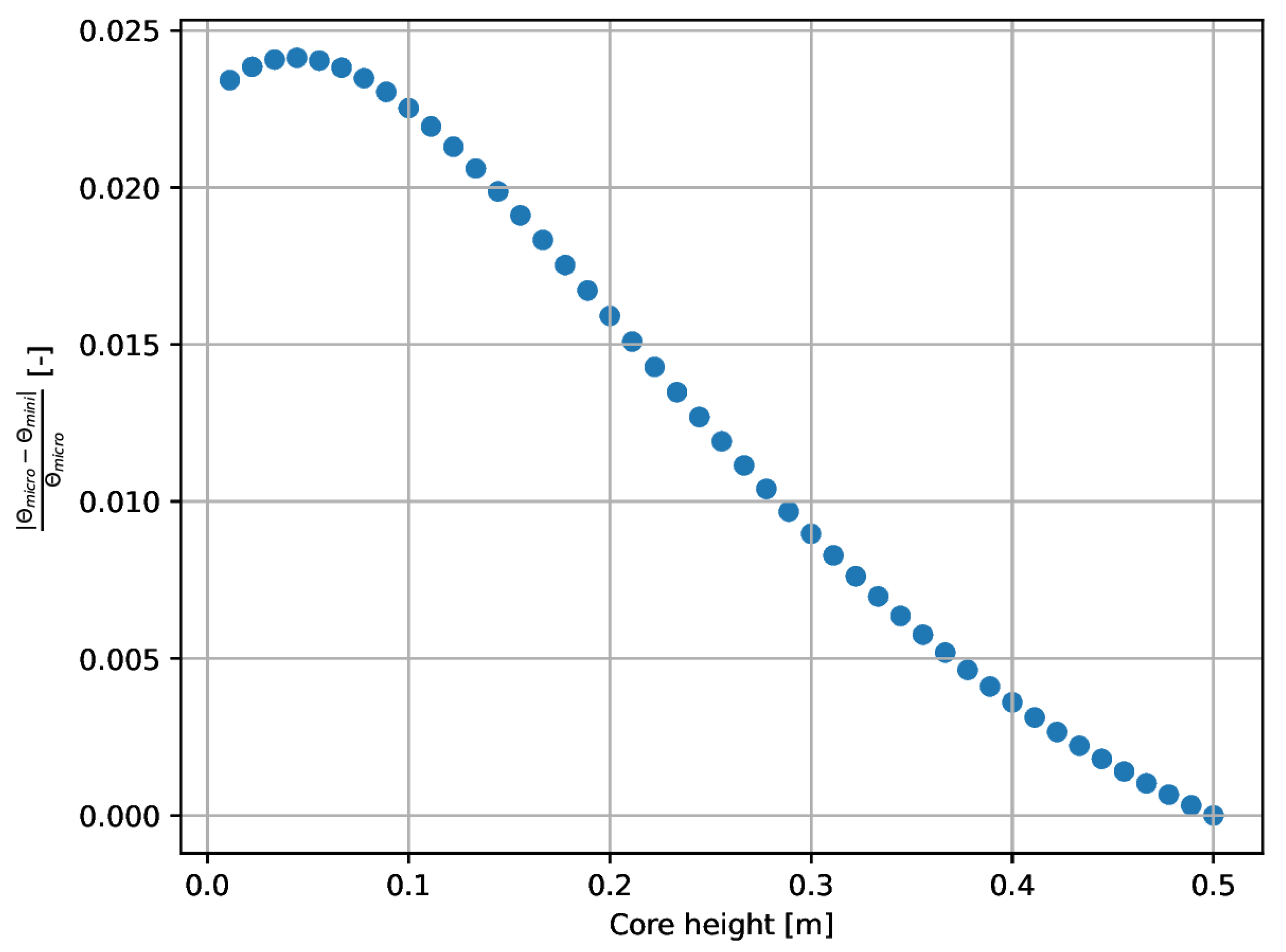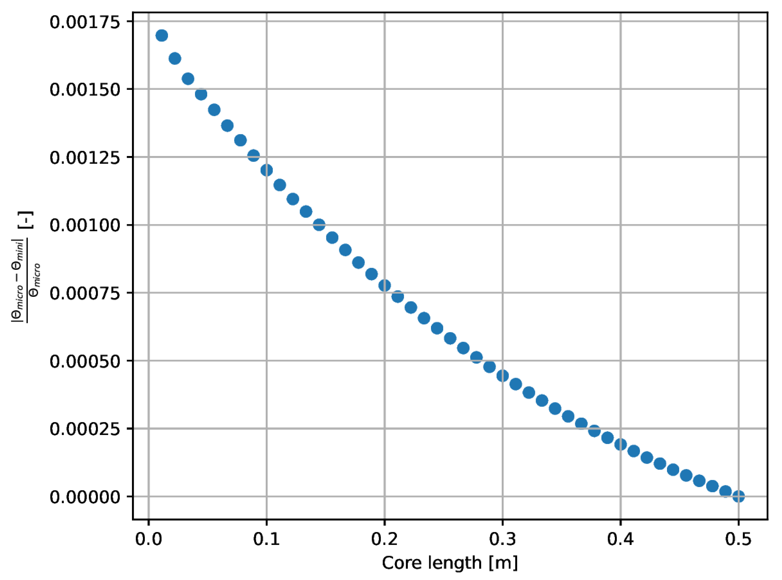 This section presents the Cathare-2 simulation results for the micro- and minidemonstrators, focusing on the specific operating conditions required to achieve similarity in their dimensionless numbers. The analysis is presented in two main cases: one targeting dynamic similarity (matching Reynolds numbers) and the other targeting thermal similarity (matching Peclet numbers). The criterion established in the article regarding the similarity of dimensionless numbers is that the relative difference between them cannot exceed 10%. The results demonstrate that the conditions required to satisfy each similarity case are distinct.