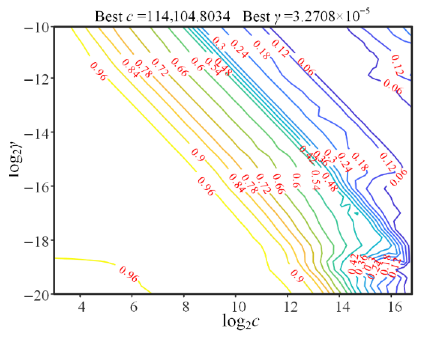 The predictive performance of the SVR model is mainly determined by its decision function, whose key parameters include the penalty coefficient c and the kernel function parameter γ. To obtain a relatively optimal parameter combination (c,γ), a grid search (GS) algorithm combined with K-fold cross-validation was used for hyperparameter optimization.
