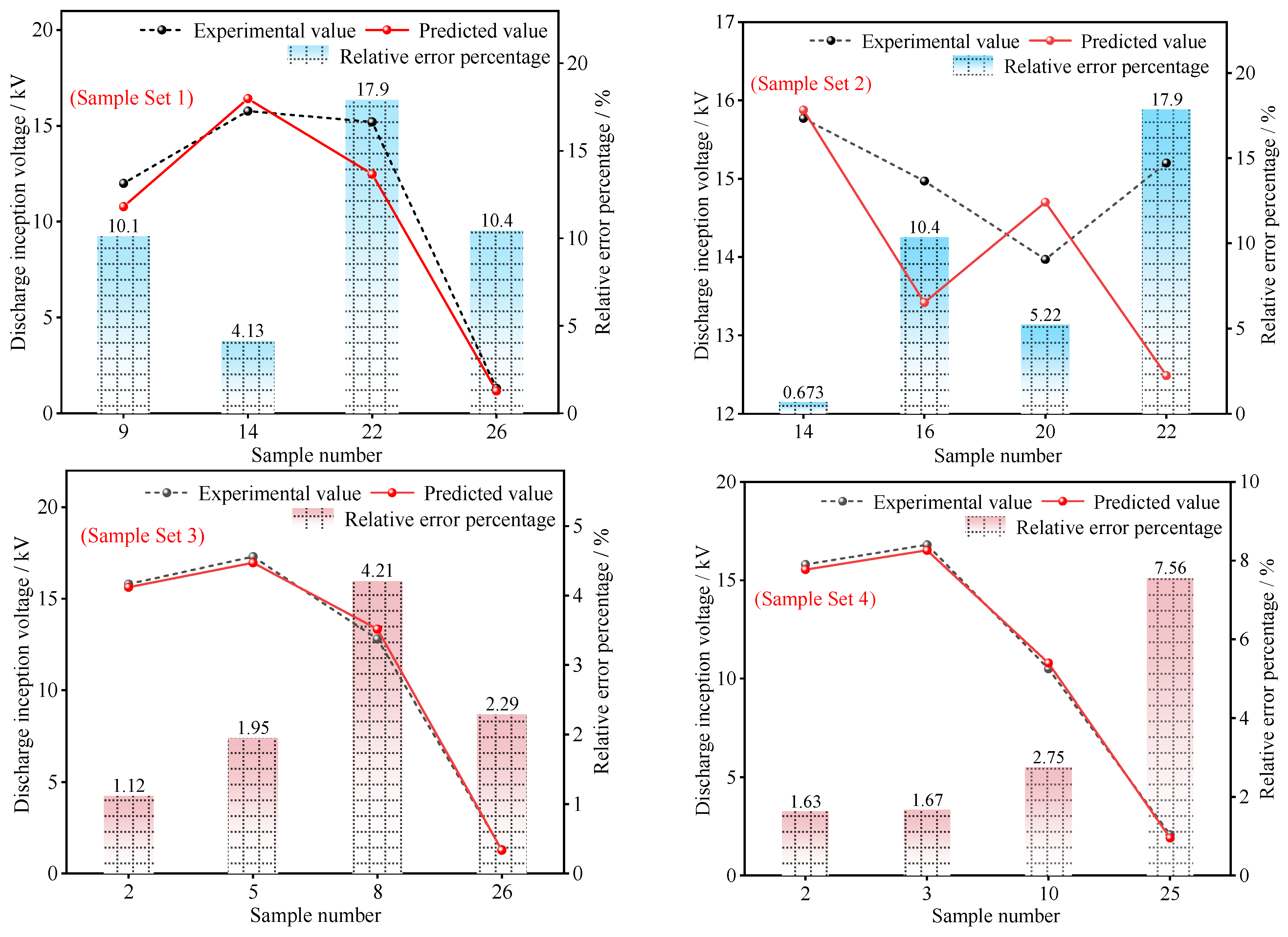 With the continuous advancement of artificial intelligence algorithms, researchers have applied them to the study of discharge characteristic prediction models, with promising results [18], enabling data-driven approaches for predicting discharge behavior. For instance, Mokhnache et al. proposed a breakdown voltage prediction method based on neural networks for point–barrier–plane structures [19]. Shakeel Akram et al. developed a deep learning-based model to predict the inception discharge voltage of insulation in electric vehicles [20]. Qiu et al. introduced a method combining electric field simulation, feature extraction, and machine learning algorithms to predict switching impulse discharge voltage in ultra-high-voltage transmission line-tower air gaps [21].