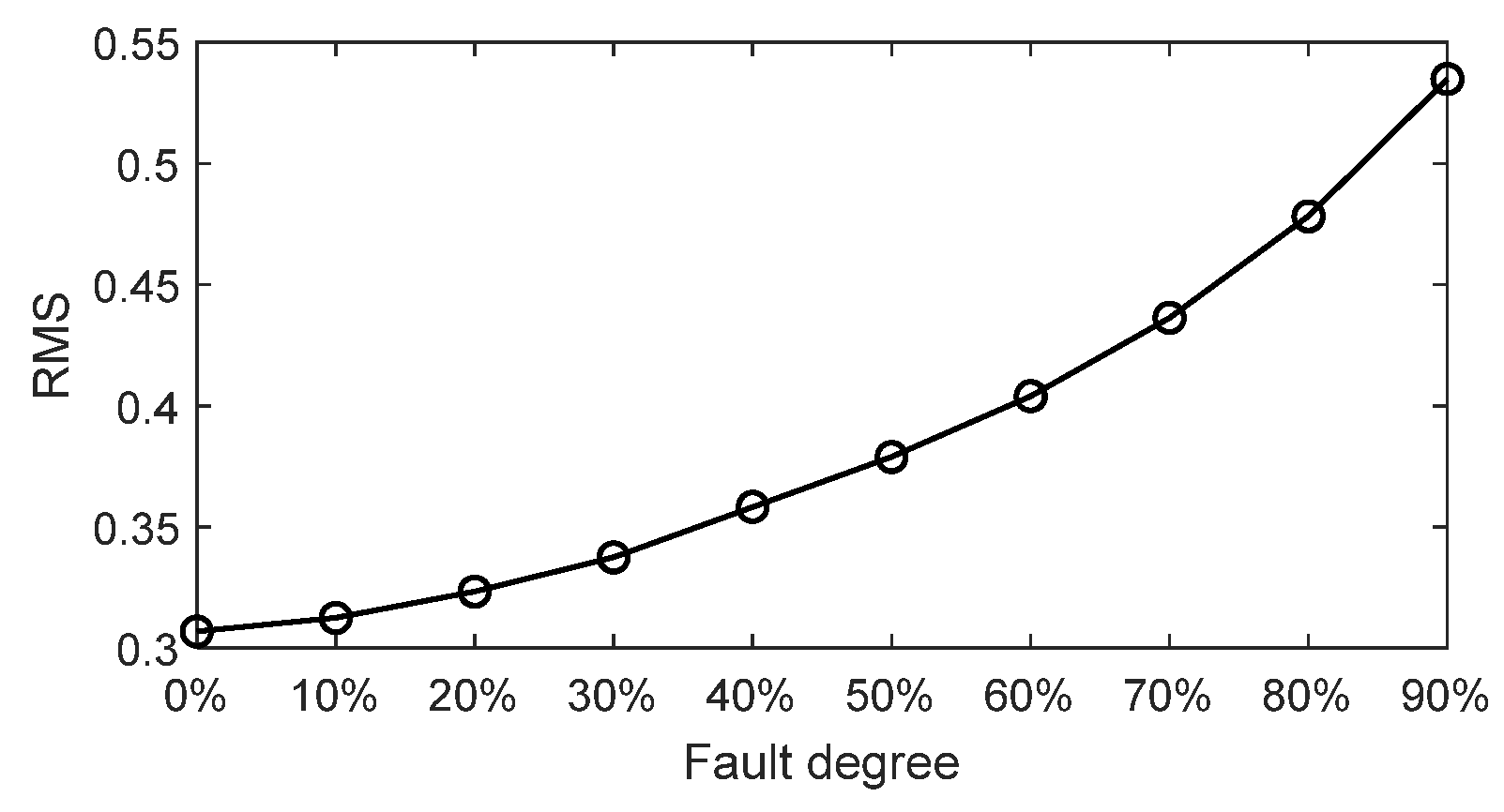 Figure 8. RMS value of the simulated acceleration signal in different fault degrees.