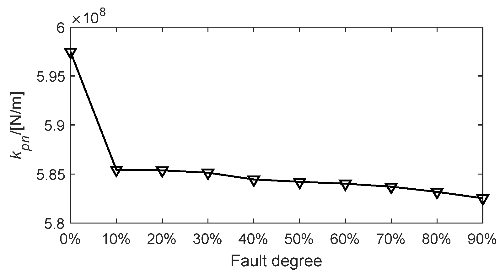 Figure 10. Supporting stiffness kpn in different fault degrees.