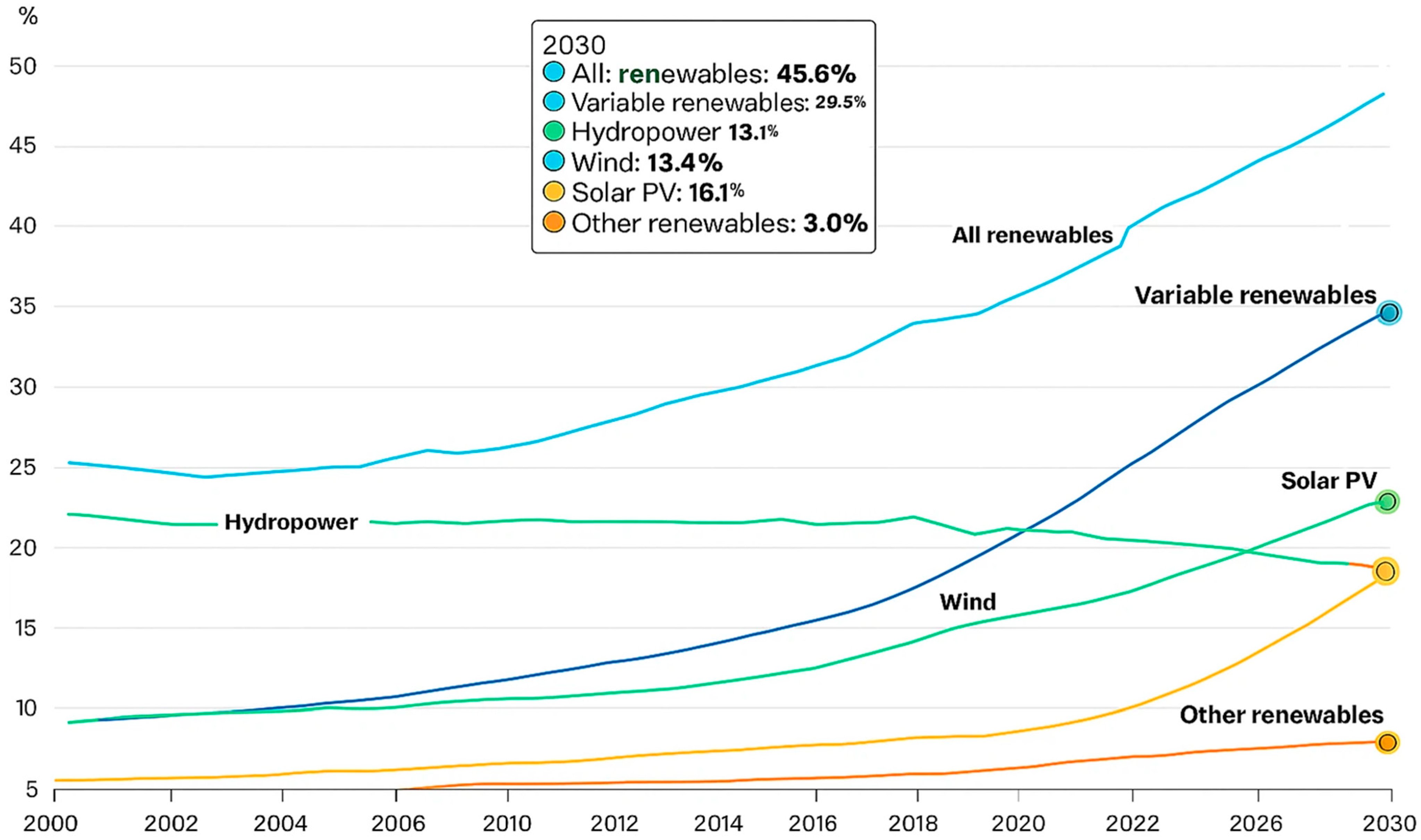 12], renewables accounted for approximately 30% of global electricity generation by 2022. Moreover, projections under the Net Zero Emissions by 2050 Scenario (NZE) estimate that this share will increase to 45.6% by 2030. This structural shift in the global energy mix confirms the technical viability of renewables as a cornerstone of the energy transition [