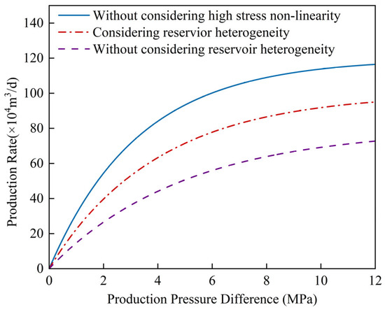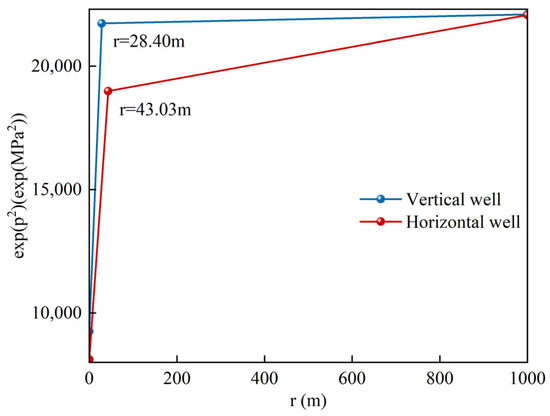 According to the relationship between pressure difference and flow rate in vertical wells, the productivity can be calculated when and are known. Under this condition, in Darcy flow region (), the pressure equation is: