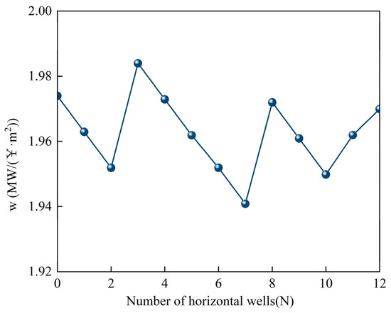 ④ Determine the size of and . If , then , , that is, replace the maximum optimization coefficient and the number of horizontal wells that meet the maximum optimization coefficient; if , or the maximum optimization coefficient and the number of horizontal wells that meet the maximum optimization coefficient have been replaced, , return to step ② and recalculate, that is, calculate the optimization function when there is one more horizontal well.