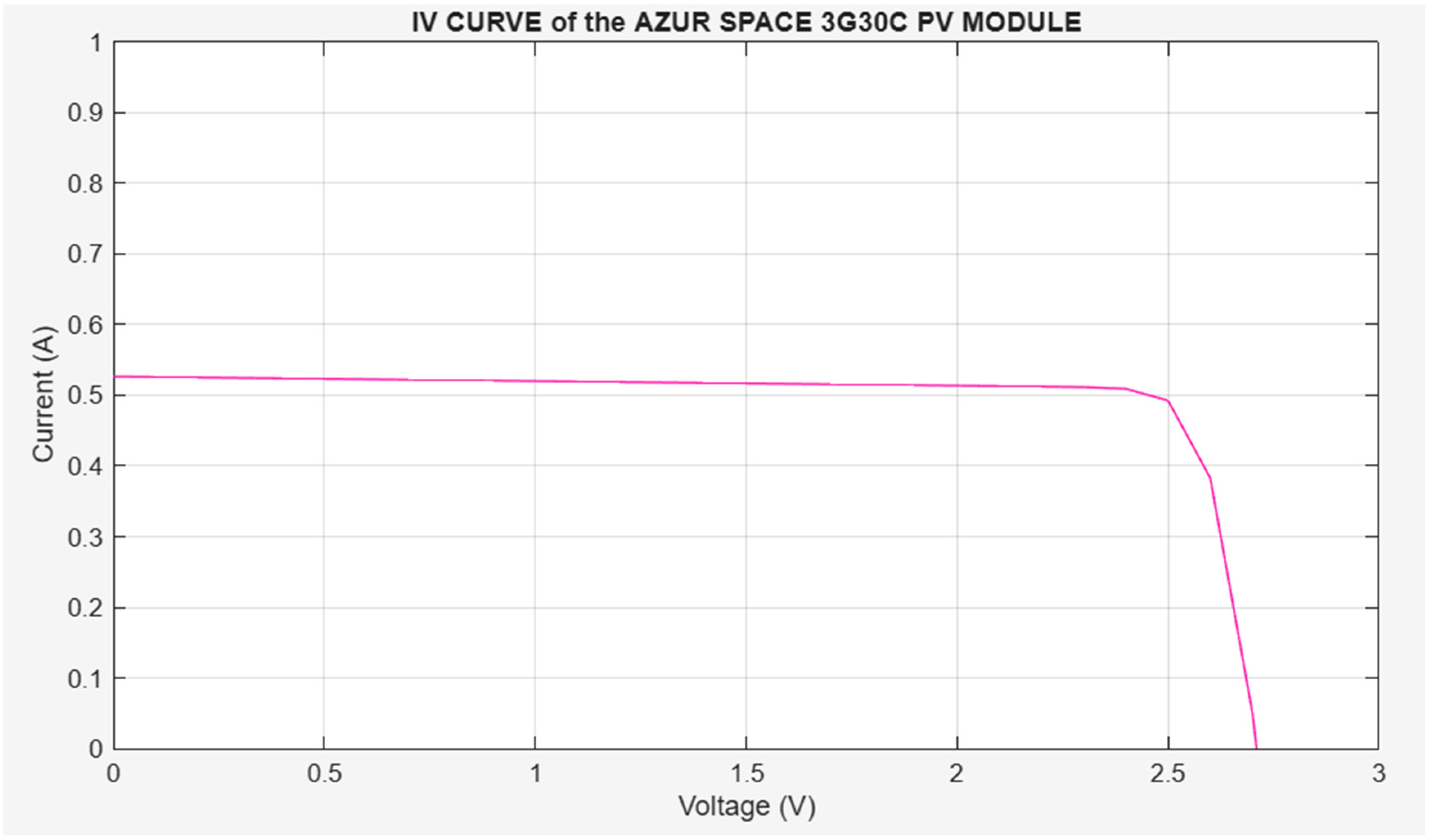 11]. These parameters were analytically fitted to the current–voltage (I-V) curves derived from the Azur Space 3G30C solar cell datasheet. This analytical fitting method utilizes characteristic points such as the short-circuit current (I