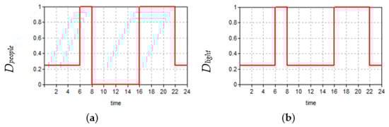 Schedules of occupancy, Dpeople (a), and use of lighting and equipment, Dlight (b).