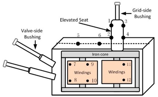 - Jiang, P.; Zhang, Z.; Dong, Z.; Wu, Y.; Xiao, R.; Deng, J.; Pan, Z. Research on distribution characteristics of vibration signals of ±500 kV HVDC converter transformer winding based on load test. Int. J. Electr. Power Energy Syst. 2021, 132, 107200. [Google Scholar] [CrossRef]