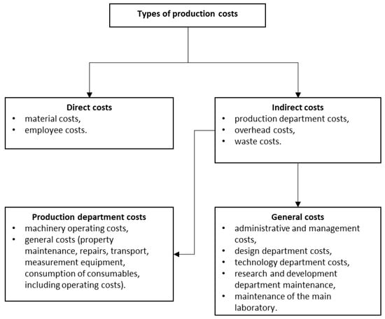 Generalized graph showing the mutual relations of production costs as a function of production volume (adopted from []).