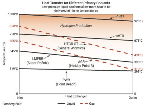 - Forsberg, C.W.; Peterson, P.F.; Pickard, P.S. Molten-Salt-Cooled Advanced High-Temperature Reactor for Production of Hydrogen and Electricity. Nucl. Technol. 2003, 144, 289–302. [Google Scholar] [CrossRef]