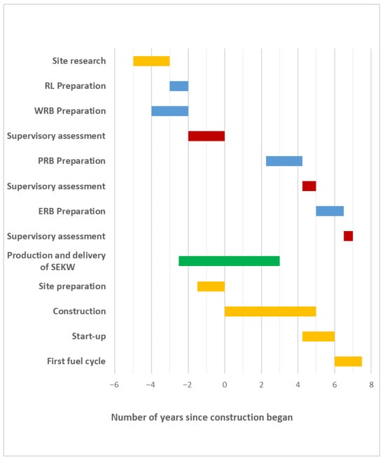 The Small Modular Reactor Regulators’ Forum (SMR RF) plays an important role in coordinating activities. It is an international regulator-to-regulator body established in 2014. The Forum provides a platform for experienced regulators to develop consensus-based positions on key SMR technical and regulatory issues []. Another industry-oriented organization was established, the European Industrial Alliance on SMRs. Its goal is to support and accelerate the development, demonstration, and deployment of SMRs in Europe by the early 2030 []. The organization adopted its first Strategic Action Plan at their second General Assembly on 12 September 2025. The successful implementation of the Strategic Action Plan will require strong commitment from both industry and the public sector, as well as collaboration among diverse stakeholders. The alliance works closely not only with its members, but also with relevant Commission services, other EU institutions, and international organizations to ensure prompt and effective deployment of SMRs in Europe []. An example of industrial activity is the agreement between OSGE and Canada’s Laurentis Energy Partners (Laurentis). The agreement supports the preparation of the European Union’s first Preliminary Safety Analysis Report (PSAR) for a SMR []. OSGE selected the BWRX-300 water-cooled, natural circulation SMR that incorporates passive safety systems. This design builds upon the foundational elements of GEH’s U.S. NRC-certified ESBWR 1520 MWe [].