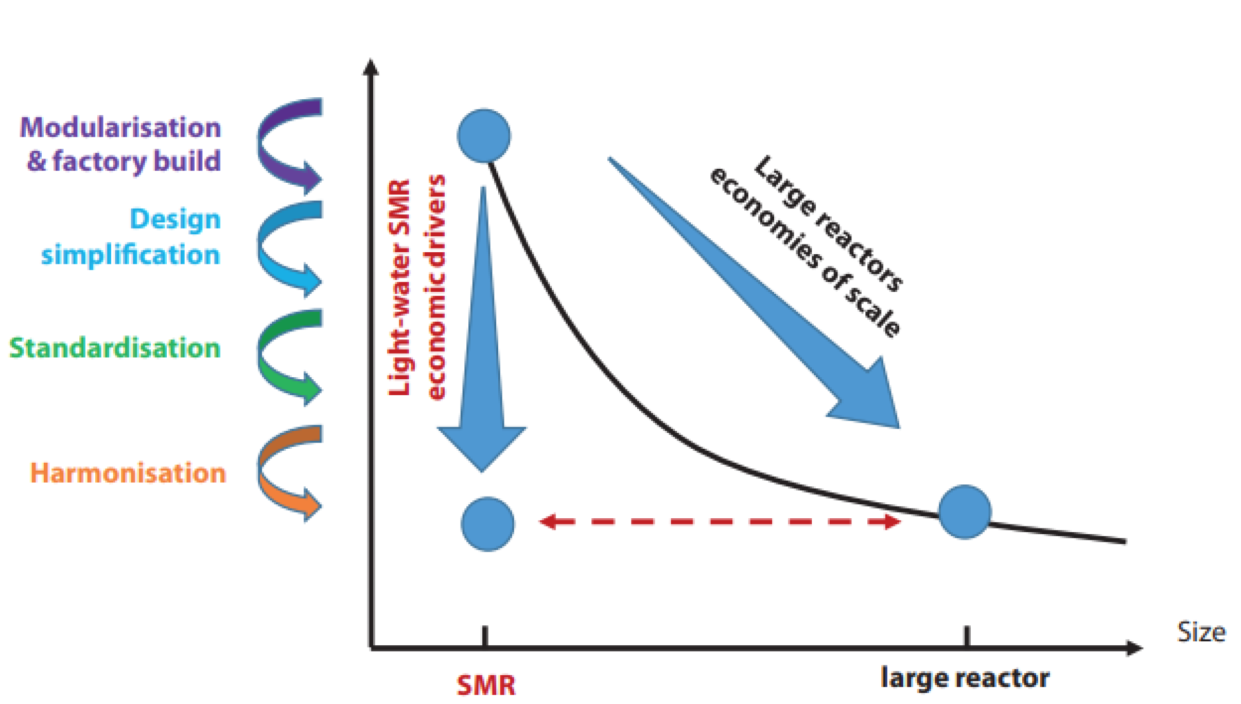 Forecasting the future costs of innovative energy technologies, such as SMRs, presents a complex challenge due to a multitude of uncertainties and variables. This shift will be essential to harness the full potential of economies of scale and increase SMR competitiveness. While LNPPs are normally tailored to specific customer needs and local regulations, SMRs will rely on common, standardized components manufactured centrally and shipped to the construction site. The economic viability of SMRs hinges on the existence of a sufficiently large market for a single design, which would drive learning curves and enable economies of multiples.