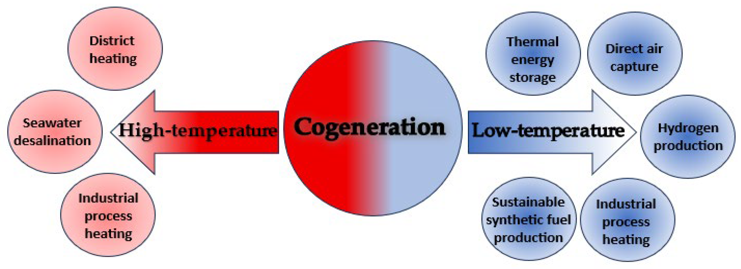 62]. High-temperature exceeding 500 °C is extracted directly from the reactor or from the secondary loop before the turbine. Examples of cogeneration applications are shown in