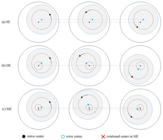 Illustration of eccentricity faults (a) SE, (b) DE, and (c) ME [33].