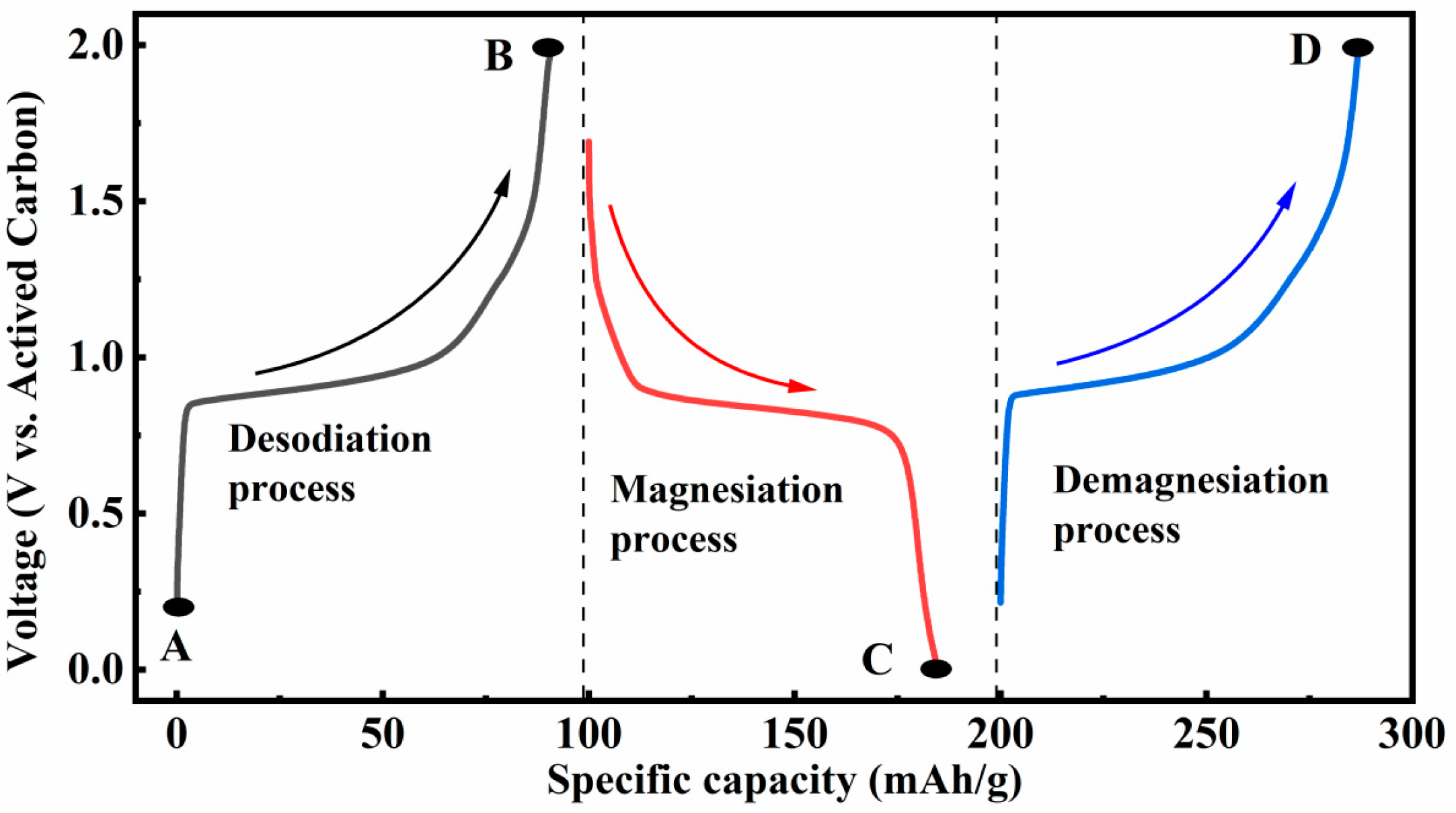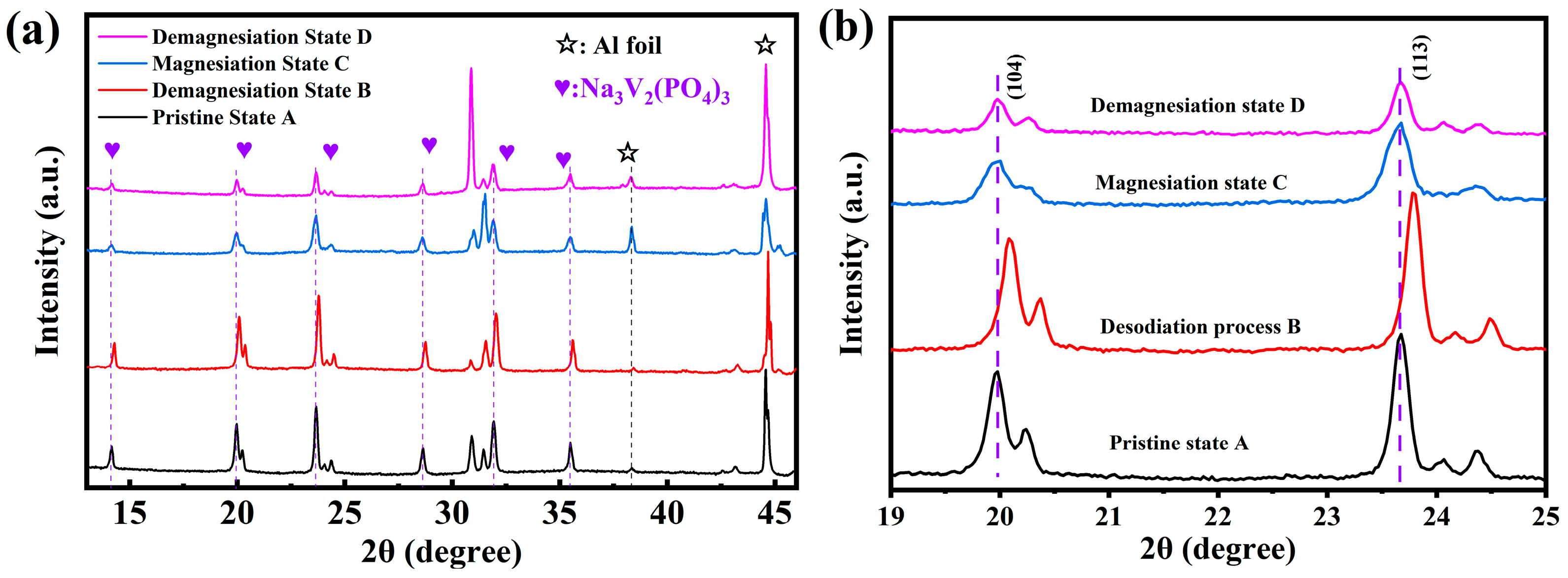 | sodium-extracted state B | Mg0.03±0.01Na0.99±0.04V2(PO4)3 |