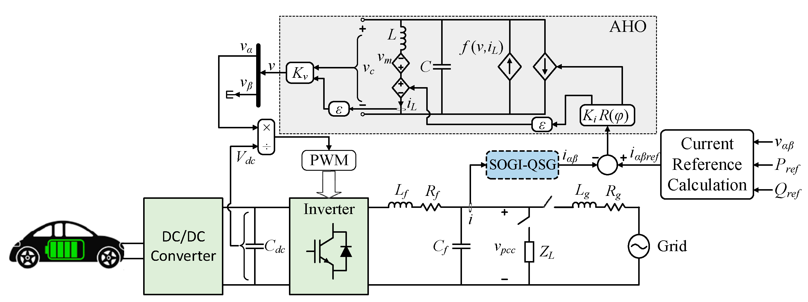 | Lf, Rf, Cf | Filter parameters | 7 mH, 0.08 Ω, 3.9 μF |