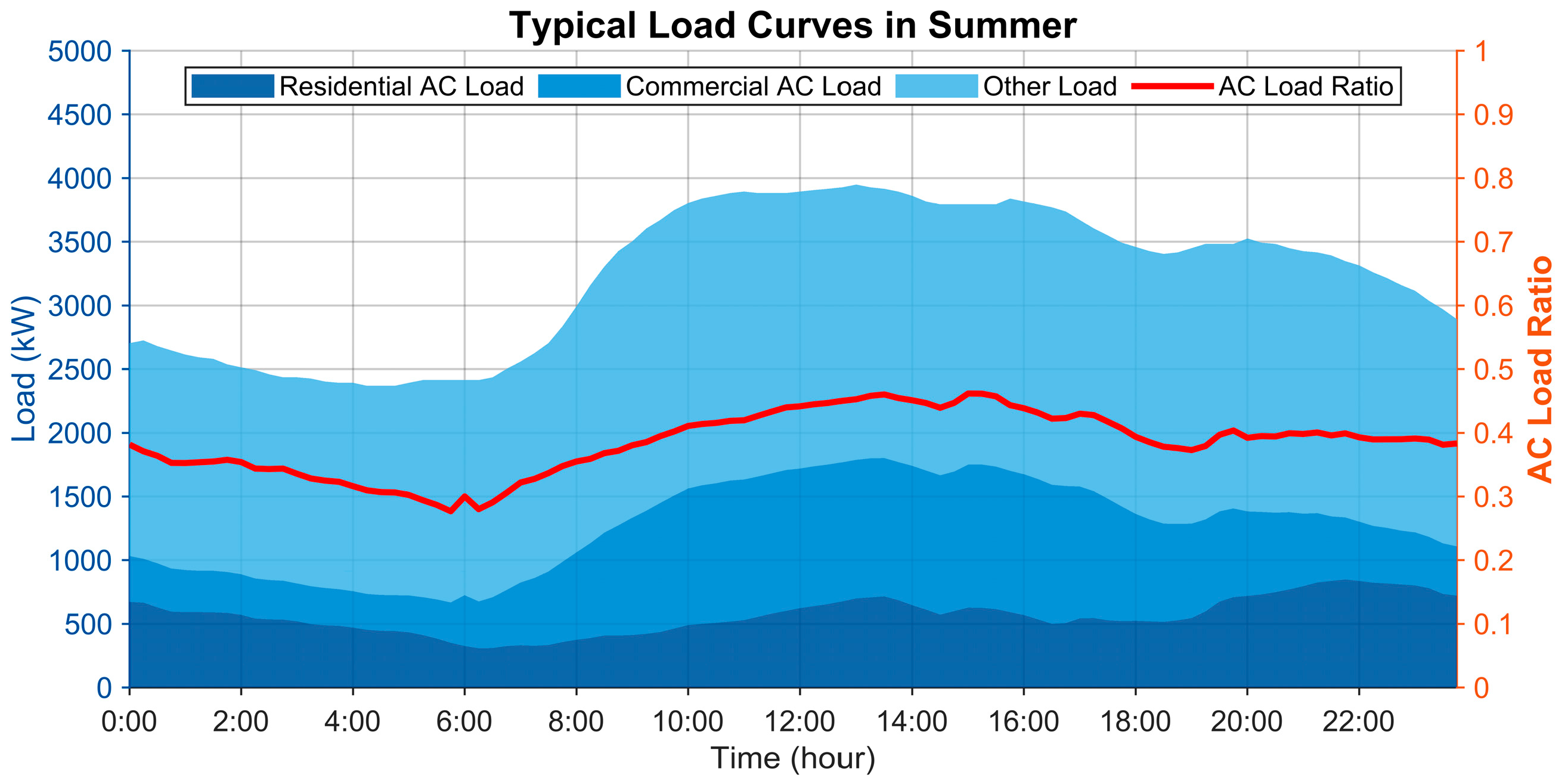 - End-Users: Comprising EV owners and AC users, end-users represent the ultimate providers of flexibility. By responding to dynamic price signals from aggregators and adjusting their charging, discharging, cooling, or heating behaviors, they receive financial compensation. For EV users, discharging during peak hours must generate sufficient revenue to offset battery degradation costs and any loss of convenience. For AC users, moderately relaxing indoor temperature setpoints during high-temperature peak hours yields energy-saving incentives or direct payments, which should compensate for the temporary sacrifice in thermal comfort.